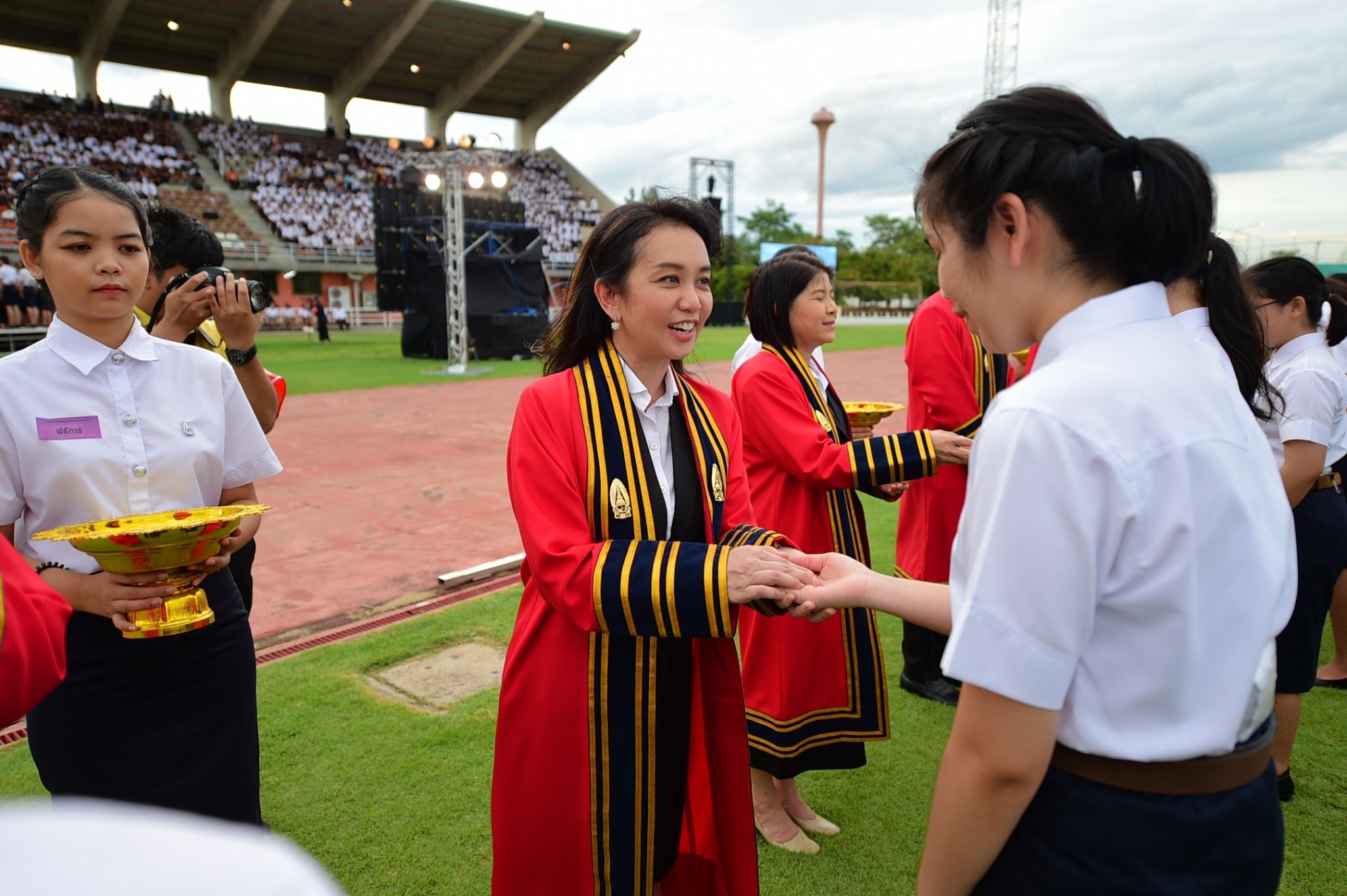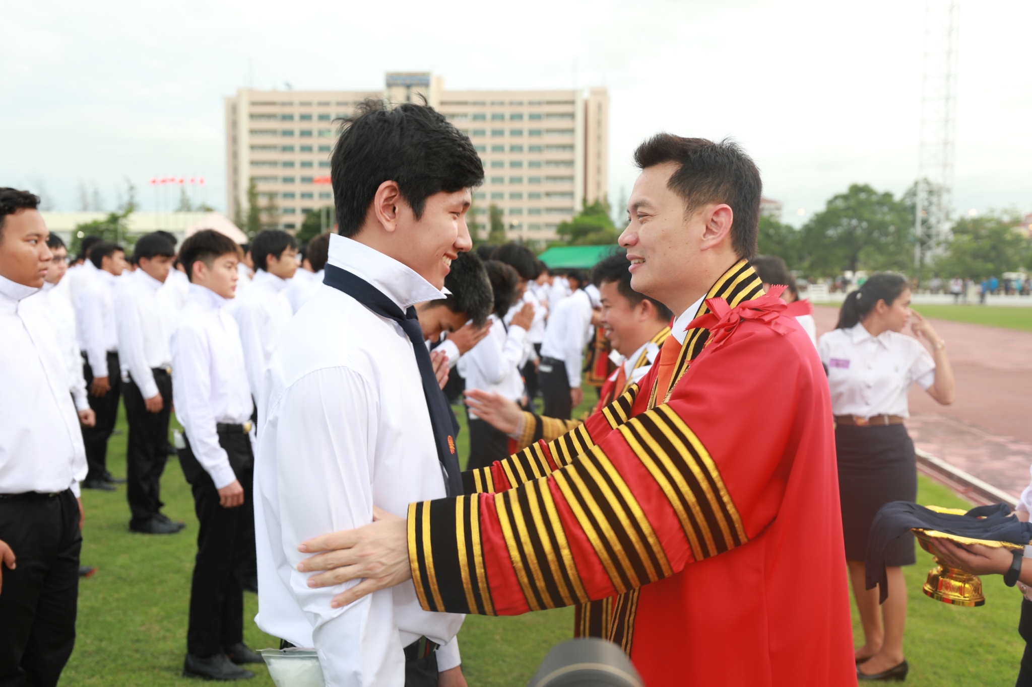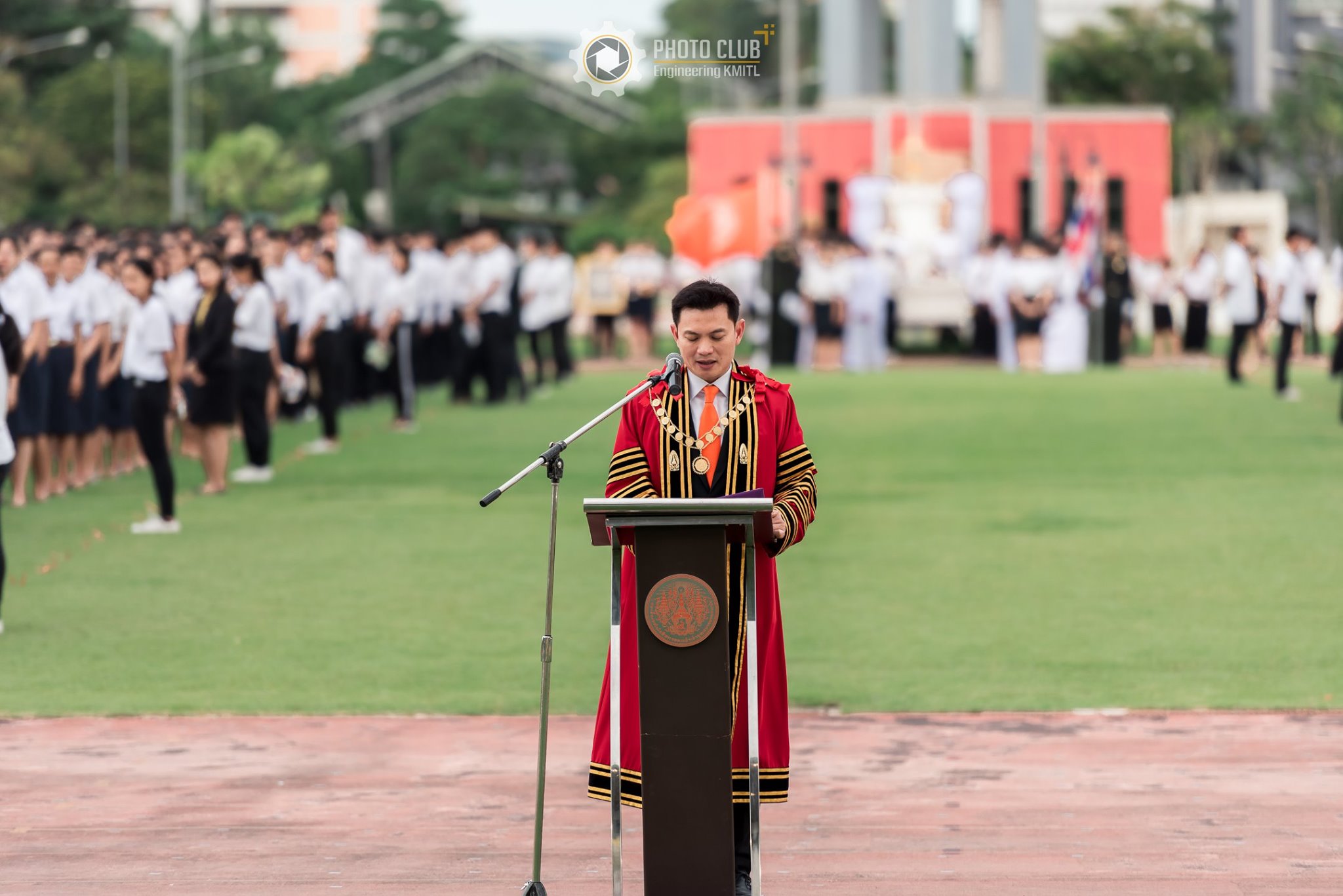 ด้าน ศ.ดร.สุชัชวีร์ สุวรรณสวัสดิ์ อธิการบดีสถาบันเทคโนโลยีพระจอมเกล้าเจ้าคุณทหารลาดกระบัง (สจล.) กล่าวว่า ถือเป็นอีกปีที่ สจล. ได้ต้อนรับบรรดานักศึกษาใหม่ รหัส 62 เข้าสู่อ้อมกอดของรั้วลาดกระบังอย่างเป็นทางการ ด้วยพิธีอันทรงเกียรติและทรงคุณค่าที่ สจล. พร้อมมอบแก่ “ลูกพระจอม” ราว 6,000 คน เพื่อเป็นขวัญกำลังใจในการศึกษาเล่าเรียน และเป็นแรงบันดาลใจสำคัญในการก้าวสู่เส้นทางการทำงานในอนาคต ทั้งนี้ ในฐานะอธิการบดี อาจารย์ผู้สอน และพี่เอ้ของน้อง ๆ ทุกคน หวังเป็นอย่างยิ่งว่า ตลอดการศึกษาเล่าเรียน การลงมือปฏิบัติจริงในโปรเจคต่าง ๆ ตลอดจนการแลกเปลี่ยนองค์ความรู้และการใช้ชีวิตแง่มุมต่าง ๆ ร่วมกับเพื่อนนักศึกษา รุ่นพี่ และคณาจารย์ ภายในรั้วสถาบันแห่งนี้ จะเป็น “ภูมิต้านทานที่ดี” ที่จะช่วยเสริมสร้างความแข็งแกร่งแก่น้อง ๆ ให้พร้อมก้าวสู่การเป็น “บัณฑิตคุณภาพ” ที่เปี่ยมด้วยจิตวิญญาณแห่ง สจล. “ซื่อสัตย์ ใฝ่รู้ สู้งาน” และที่พรั่งพร้อมด้วยทักษะความสามารถ มีศักยภาพของความเป็นผู้นำ ที่กล้าคิด กล้าทำ กล้าแสดงออก และกล้าเผชิญกับความเปลี่ยนแปลงต่าง ๆ ในยุคดิสรัปชัน (Disruption)