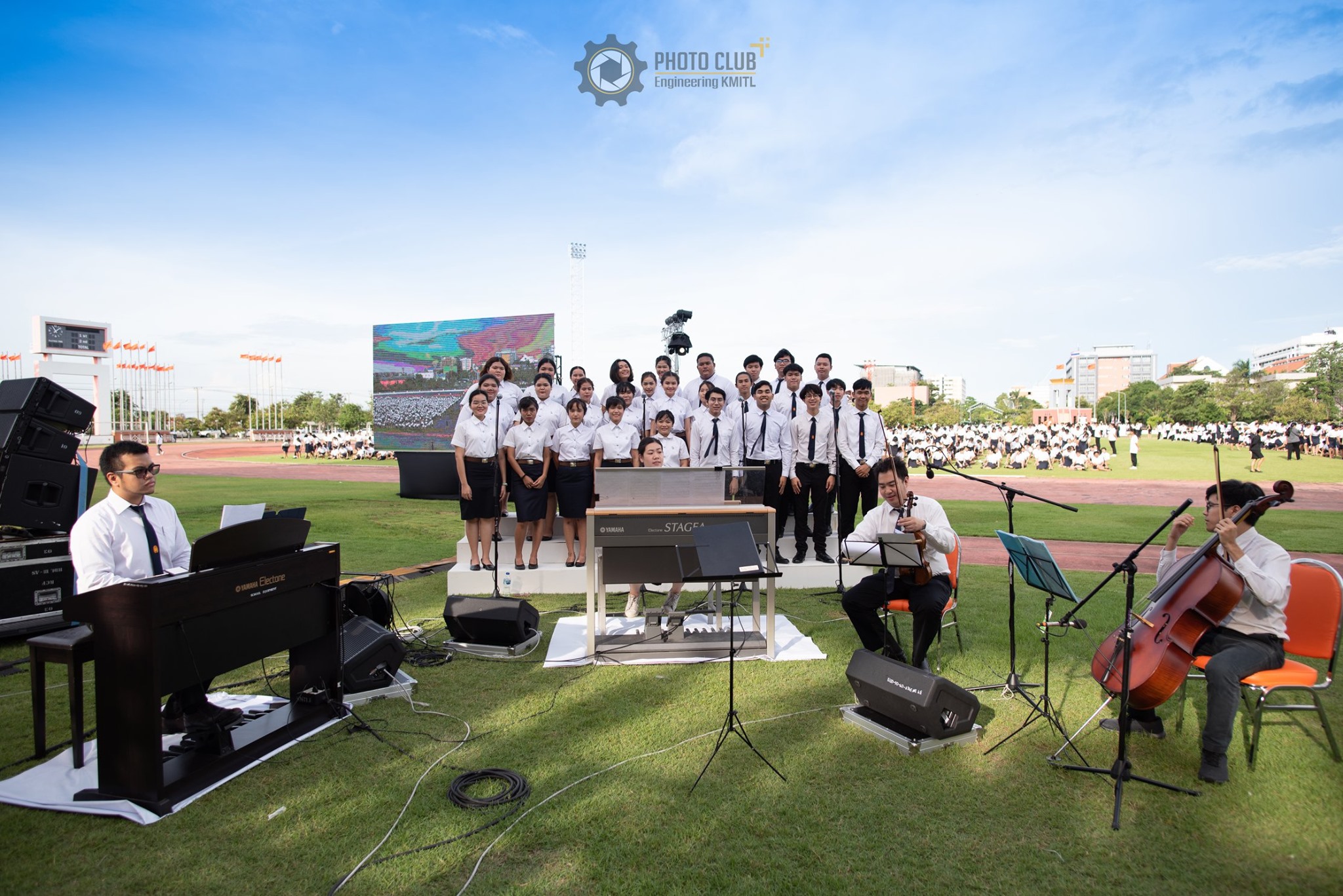 นอกจากนี้ ภายในงานยังมีคณาจารย์และรุ่นพี่จากคณะต่าง ๆ ร่วมเปล่งเสียงประสานในบทเพลงประจำสถาบัน เพื่อร่วมต้อนรับ “แคแสดช่อใหม่” ซึ่งดิฉันรู้สึกภาคภูมิใจยิ่งที่ได้เป็นส่วนหนึ่งของพิธีการดังกล่าว นับตั้งแต่ปี 1 ในฐานะนักศึกษาใหม่ผู้เข้าร่วม ปีต่อมาในฐานะทีมงาน และล่าสุดกับการรับหน้าที่สำคัญในฐานะ “นายกองค์การนักศึกษา สจล.” ที่ต้องดำเนินการประสานงานในขั้นตอนต่างๆ ให้เป็นไปด้วยความราบรื่น ทั้งนี้ ดิฉันมองว่า พิธีการดังกล่าวนับเป็นการรับน้องอีกรูปแบบหนึ่งที่สร้างสรรค์ อันทรงคุณค่าที่ค่าแก่การสืบสาน สืบทอด และส่งต่อประเพณีที่ดีงามสืบต่อไป