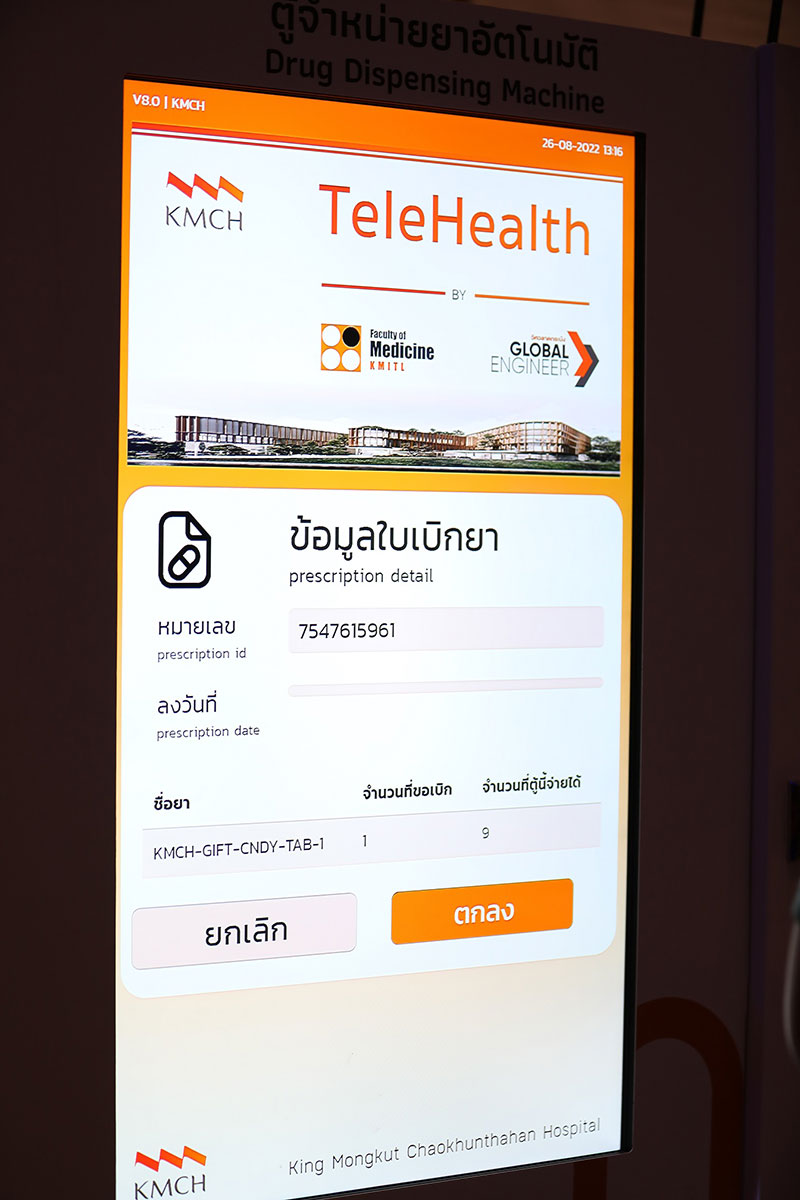 เครื่องฟังตรวจดิจิทัล ช่วยฟังเสียงหัวใจและเสียงปอดแบบดิจิทัล พร้อมระบบวิเคราะห์โรคและความผิดปกติเบื้องต้น ด้วยระบบเอไอ (AI) สามารถนำไปใช้เป็นส่วนหนึ่งของระบบแพทย์ทางไกลได้ ตู้จ่ายยาอัจฉริยะ ลดขั้นตอนการจ่ายยาจากเดิมที่ต้องต่อคิวรับยาจากเคาน์เตอร์จำหน่ายยา เปลี่ยนเป็นการรับที่ตู้จำหน่ายยาแทน ลดความแออัดในโรงพยาบาล ลดขั้นตอนการอธิบายวิธีใช้ยา โดยผู้รับยาสามารถใช้แอปพลิเคชันแสกนซองยา เพื่อดูวิธีการใช้ยาตามแพทย์สั่ง เป็นอีกหนึ่งนวัตกรรมที่สามารถใช้ร่วมกับระบบการแพทย์ทางไกลได้