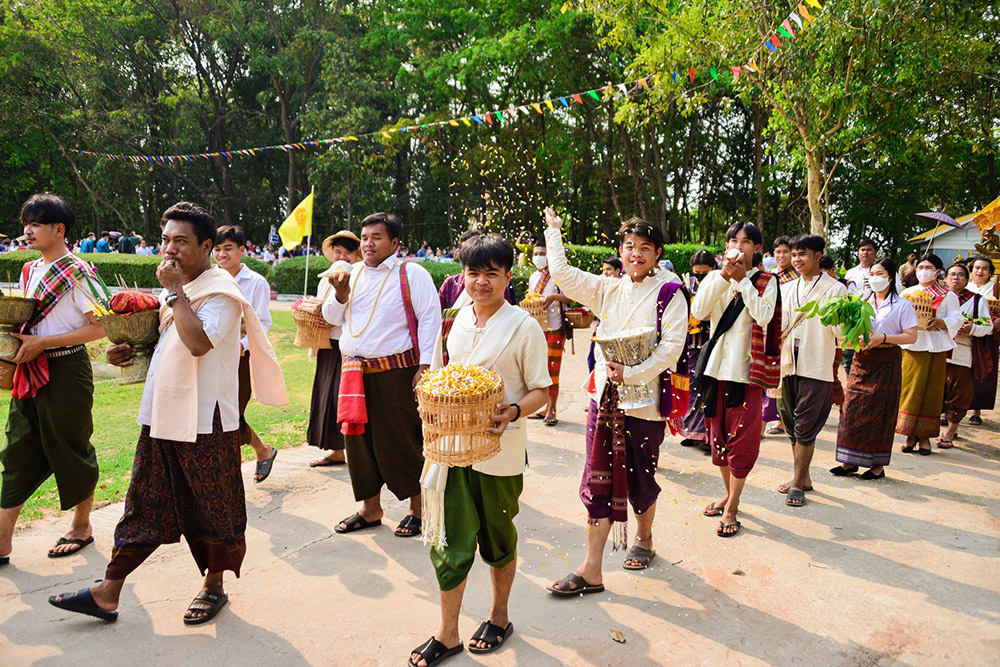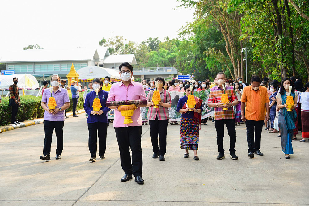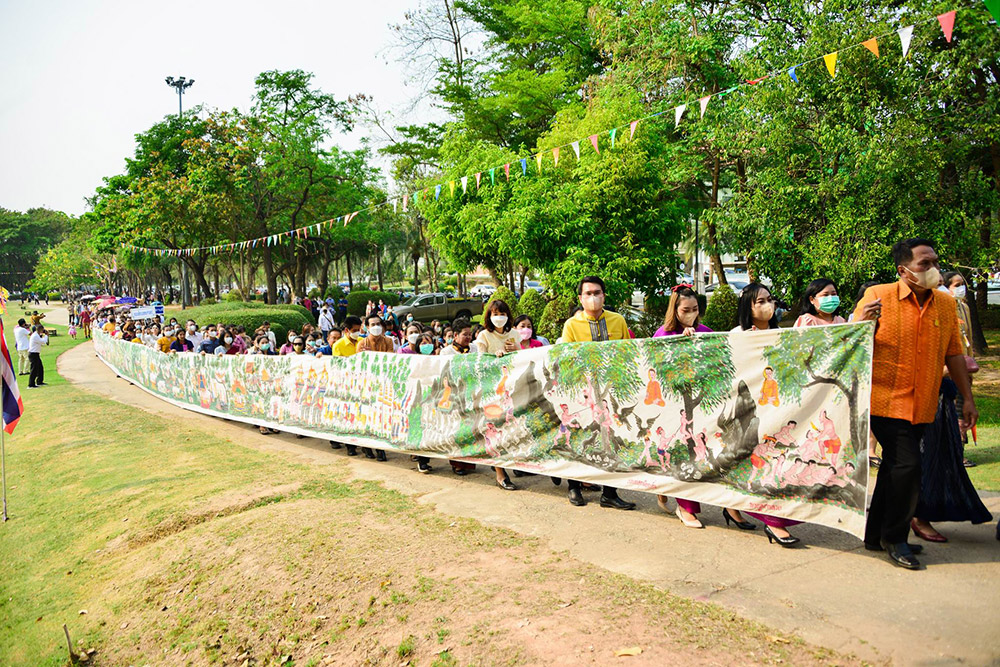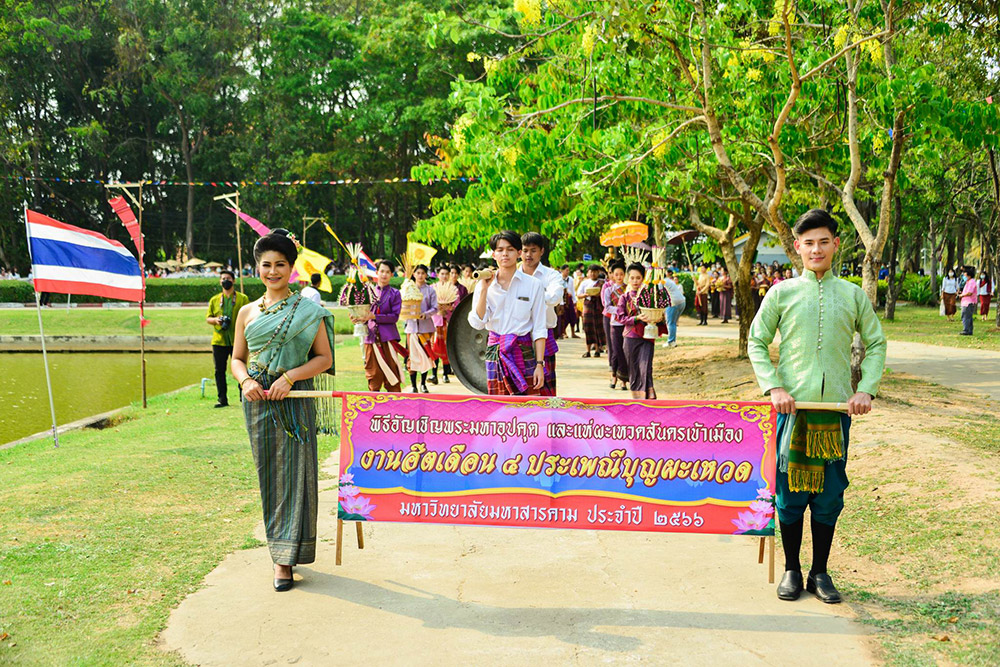 คณะผู้บริหาร คณาจารย์ บุคลากร นิสิตมหาวิทยาลัยมหาสารคาม ร่วมในขบวนพิธีแห่พระอุปคุต และแห่ผ้าผะเหวดเข้าเมือง มีขบวนกลองยาวศิลป์อีสานโดยนิสิตวิทยาลัยดุริยางคศิลป์ และขบวนฟ้อนรำ นำขบวนแห่จากนิสิตคณะศิลปกรรมศาสตร์และวัฒนธรรมศาสตร์ แห่ไปยังบริเวณเวทีกลางลานพิพิธภัณฑ์ มหาวิทยาลัยมหาสารคาม ประกอบพิธีเจริญพระพุทธมนต์สมโภชบุญผะเหวด ฟังเทศน์มาลัยหมื่น – มาลัยแสน และในช่วงเย็นรับชมการแสดงศิลปวัฒนธรรมพื้นบ้านอีสาน จากนิสิตมหาวิทยาลัยมหาสารคาม ณ พิพิธภัณฑ์มหาวิทยาลัยมหาสารคาม