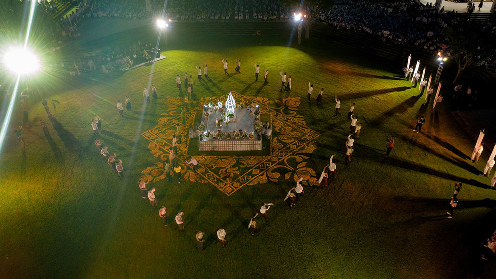 ประกอบด้วยริ้วขบวนนางฟ้อน นางรำ ริ้วขบวนอัญเชิญตราโรจนากร ริ้วขบวนเชิญธงมหาวิทยาลัย ธง 17 คณะ 2 วิทยาลัย ริ้วขบวนอัญเชิญพระพุทธกันทรวิชัย อภิสมัยธรรมนายก ริ้วขบวนอัญเชิญพานบายศรีสู่ขวัญ ทั้ง 17 คณะ 2 วิทยาลัย เข้าสู่บริเวณพิธี มีการแสดงชุด”ฟ้อนบายศรีสู่ขวัญ” โดยนิสิต ภาควิชาศิลปะการแสดง คณะศิลปกรรมศาสตร์และวัฒนธรรมศาสตร์