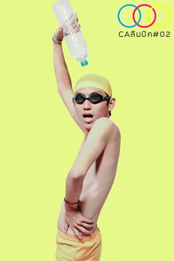 สีเหลืองสดใส ถือขวดน้ำ จะสื่อว่านักกีฬาว่ายน้ำอะเปล่านะ!