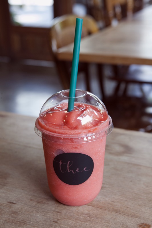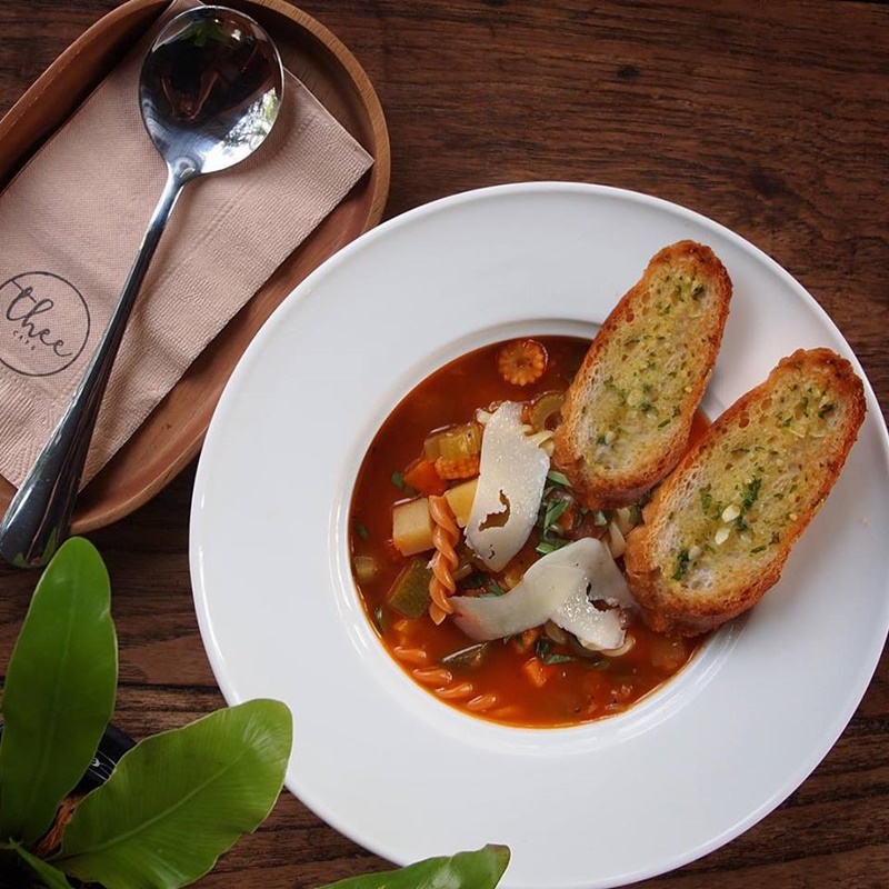 ขอแนะนำคาเฟ่สุดอบอุ่น กลางสวนร่มรื่นกับร้าน “Thee Café” ในซอยงามวงศ์วาน 54 กับบรรยากาศแนววินเทจ บ้านไม้โทนสีน้ำตาล รายล้อมด้วยร่มไม้สีเขียวร่มรื่น เหมาะสำหรับการนั่งชิลๆ จิบชาและกาแฟสูตรพรี่เมี่ยมของทางร้านเบาๆหรือจะสั่งเป็นเครื่องดื่มเย็นสดชื่น “RHUBARB HONEY SODA” รูบาร์บ น้ำผึ้ง และโซดาผสมผสานกันอย่างลงตัว กินเข้ากับอาหารฟิวชั่นสไตล์เพื่อสุขภาพ ไม่ว่าจะเป็นเมนูหลักๆ อย่าง “สปาเก็ตตี้มันกุ้ง” และเมนูใหม่ล่าสุดของทางร้าน “ข้าวไก่รมควัน” บวกน้ำจิ้มแจ่วรสเด็ด อิ่มครบเครื่องไปในตัว ตบท้ายด้วยของหวานเค้กโฮมเมดที่สาวๆ ขาดไม่ได้แน่นอน
