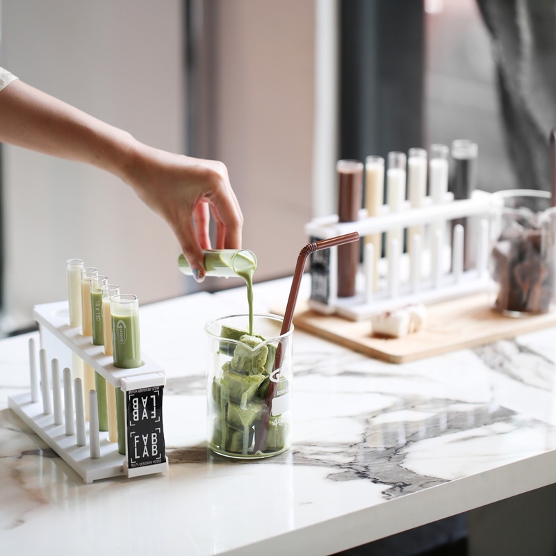 โปรเจ็คชิคๆ จาก “FABLAB” Multi-Brand Store มัลติแบรนด์สโตร์สำหรับวัยรุ่นที่ต้องการคาเฟ่แนวแปลกใหม่ ไม่ซ้ำใคร แถมด้วยแฟชั่นเสื้อผ้าและไลฟ์สไตล์ความงามแบบครบครัน ขอแนะนำคาเฟ่ไอเดียเก๋ ในซอยสุขุมวิท 63 “FABLAB CAFÉ &DINING” ที่เรียกได้ว่าเป็นเมืองแห่งแฟชั่นใจกลางกรุง ที่ด้านล่างคือคาเฟ่สไตล์โมเดิร์นโทนขาว-ดำที่มีไอเดียเครื่องดื่มที่มีอุปกรณ์ที่ใส่เหมือนแล็ปทดลองให้ลูกค้าได้สนุกกับการแต่งเสริมเติมชิมด้วยตัวเอง อย่างเมนู CUBES & TUBES หลากรสชาติ เช่น ชาเขียว ชาไทย หรือลาเต้ จะเพิ่มส่วนผสมให้อร่อยแค่ไหน เอาหลอดทดลองนั้นมาเติมเองได้เลย