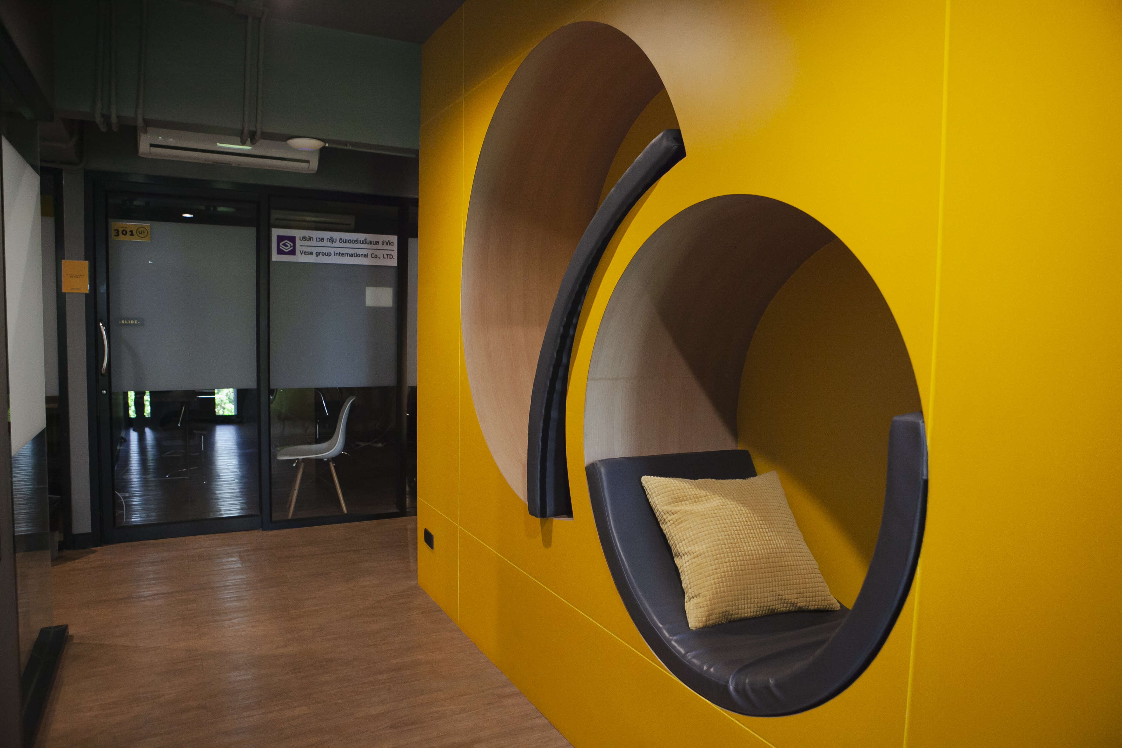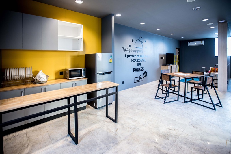 หรือจะเป็นการพบปะสังสรรค์ในแบบชิลๆ บนคาเฟ่ชั้น 2 พร้อมอาหารสไตล์ Oatmeal และ House Special ตอบโจทย์ทั้งคนไทยและคนต่างชาติได้เป็นอย่างดีส่วนชั้น 4 เป็น Co-living Space มีส่วนของโซนตู้นอนคล้ายโฮสเทลของคนทำงาน พร้อมห้องนั่งเล่น ห้องครัวครบครันอีกด้วย