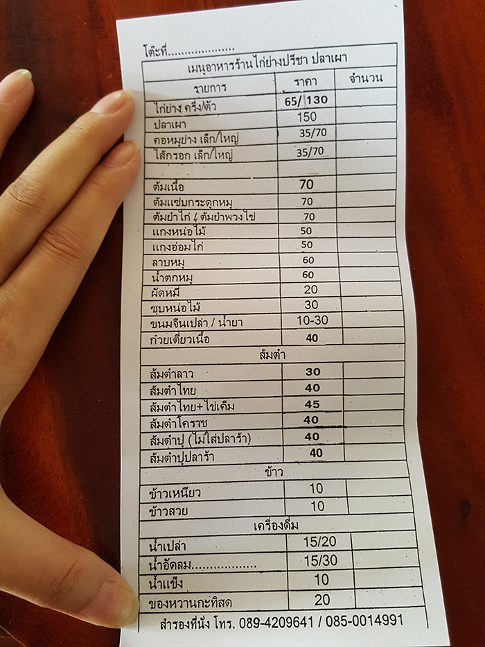 เมนูอาหารร้านปรีชาไก่ย่าง
