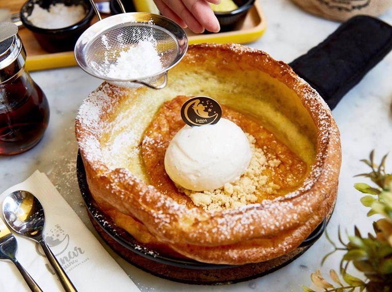 วันนี้เรามาอัพเดทร้านโดนใจชาวมอในสไตล์เทรนด์เอเชี่ยนในศูนย์การค้าอินเทรนด์อย่างสยามสแควร์วันกันดีกว่า ที่ชั้น 1กับ “Lunar Nuna Korean Dessert Cafe”คาเฟ่ขนมหวานสไตล์เกาหลีของสาวออม-สุชาร์ มานะยิ่ง ที่มีจุดเด่นเป็นขนมหวานแพนเค้กสูตรพิเศษที่มีขอบกรอบนุ่ม หรือที่เรียกว่า Dutch Baby Pancake จากเยอรมันมาทำเป็นแพนเค้กกระทะร้อนเมนู Signature อย่าง ORIGINAL STAR DUTCH BABY หรือเพิ่มซอสนมกล้วยเกาหลีอย่าง KOREAN BANANA MILKY WAY DUTCH BABY และอีกเมนูหลากหลายที่คิดค้นขึ้นใหม่จากทางร้าน เป็นเมนูจานยักษ์กินกันหลายคนเต็มอิ่มแน่นอน ใครเป็นติ่งขนมหวานเกาหลี ห้ามพลาดร้านนี้เลย