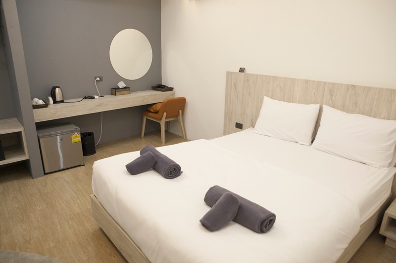 ที่นี่มีห้องพักแบบพักรวมและแบบห้องเดี่ยวหลากหลายสไตล์ ห้องพักรวมมีทั้งหมด 7 ห้องให้เลือกทั้งแบบ 4 เตียง 6 เตียง 8 เตียง ถึง 10 เตียง ส่วนห้องเดี่ยวเป็นเตียงคู่ ที่เน้นโทนสีเทาฟ้าขาวเรียบง่าย สบายตา พร้อมอุปกรณ์ในห้องครบครันนอกจากนั้นยังมีพื้นที่ส่วนกลางนั่งเล่นสำหรับแขกที่ชั้น 3 มีทั้งคอมพิวเตอร์ ทีวี ครัวเล็กๆ และมุมสวนเล็กส่วนใครเบื่อๆ หิวๆ ก็สามารถลงไปนั่งรับประทานที่ห้องอาหารชั้น 1 ได้ด้วย ต้องเปลี่ยนบรรยากาศมาอยู่เองถึงจะรู้