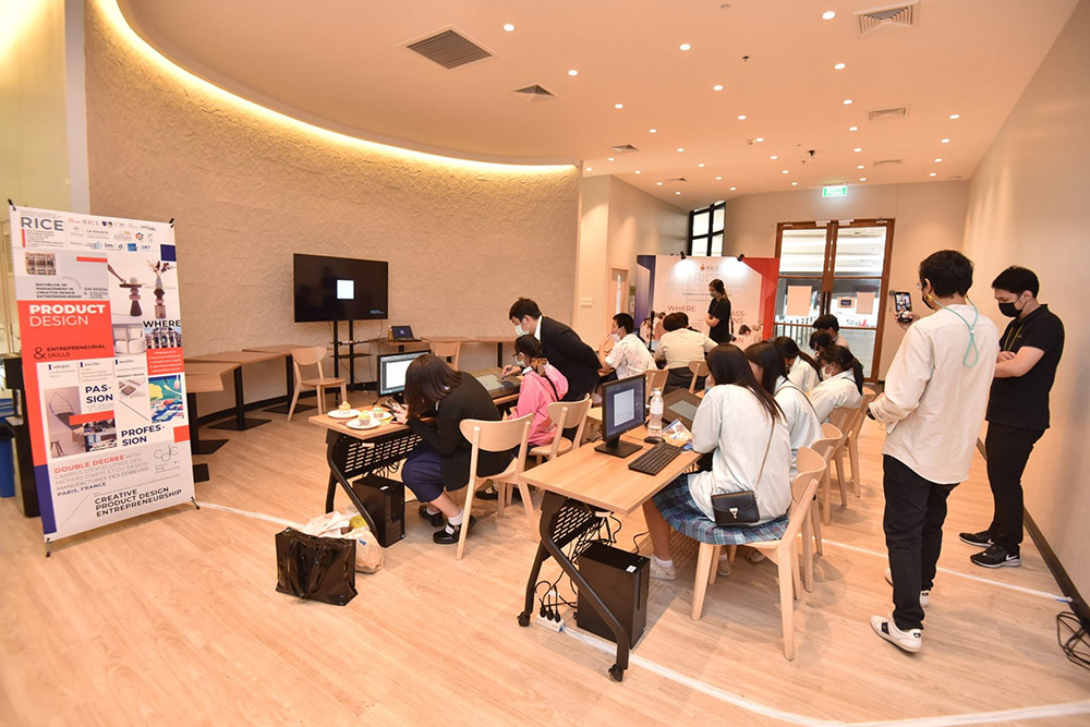 นอกจากที่เหล่านักเรียน นักศึกษาจะได้ฟังผู้คร่ำหวอดในวงการวิชาชีพในฝันแต่ละท่านให้คำแนะนำแล้ว ภายในงานยังได้มีการจัด Workshop ตามสายอาชีพต่าง ๆ ทั้งการออกแบบแฟชั่น การออกแบบผลิตภัณฑ์ และเชฟ รวมถึง RICE Virtual Tour พาน้อง ๆ เยี่ยมชมสถานที่เรียนจริงผ่าน Virtual Reality เพื่อเป็นการแนะนำการเรียนรู้หลักสูตรต่าง ๆ อีกด้วย