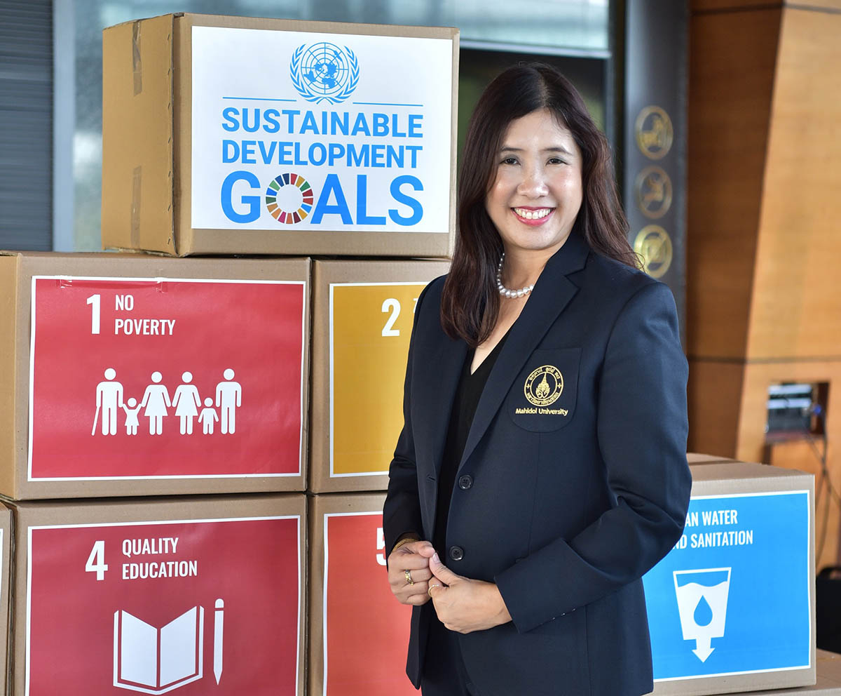 ด้านรองศาสตราจารย์ ดร.นภเรณู สัจจรักษ์ ธีระฐิติ รองอธิการบดีฝ่ายวิเทศสัมพันธ์และสื่อสารองค์กร มหาวิทยาลัยมหิดล กล่าวว่า การส่งเสริมความยั่งยืนให้เกิดขึ้นในสังคมไทยได้จริงในระยะยาวนั้น นอกจากสถาบันการศึกษาจะมีบทบาทสำคัญในการร่วมพัฒนานักศึกษาและบุคลากรให้เข้าใจด้านความยั่งยืน เพื่อขยายความร่วมมือกับเครือข่ายต่างๆ ในการช่วยแก้ปัญหาที่โลกกำลังเผชิญทั้งความยากจน ความไม่เท่าเทียม สภาวะโลกร้อน ตลอดจนสันติสุขแล้ว หากต้องการเร่งการส่งเสริมความยั่งยืนให้เกิดผลสัมฤทธิ์ในสังคมไทยได้อย่างรวดเร็ว ต้องอาศัยความร่วมมือจากภาครัฐเป็นสำคัญ โดยมหาวิทยาลัยมหิดล ได้ร่วมทำการวิจัยกระทั่งผลิตเป็นรายงานด้านความยั่งยืน ประจำปี 2023 ซึ่งมีข้อเสนอแนะแนวทางการพัฒนาความยั่งยืนต่อไปในอนาคตได้ ด้วยรูปแบบ 5Ps ดังนี้