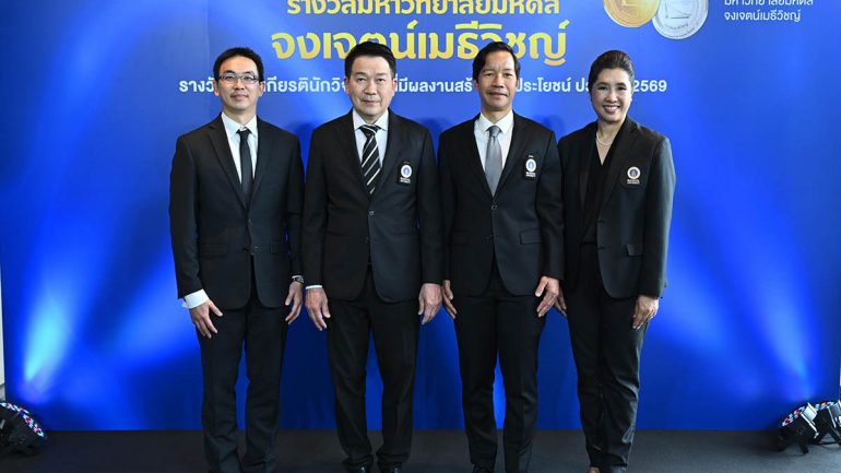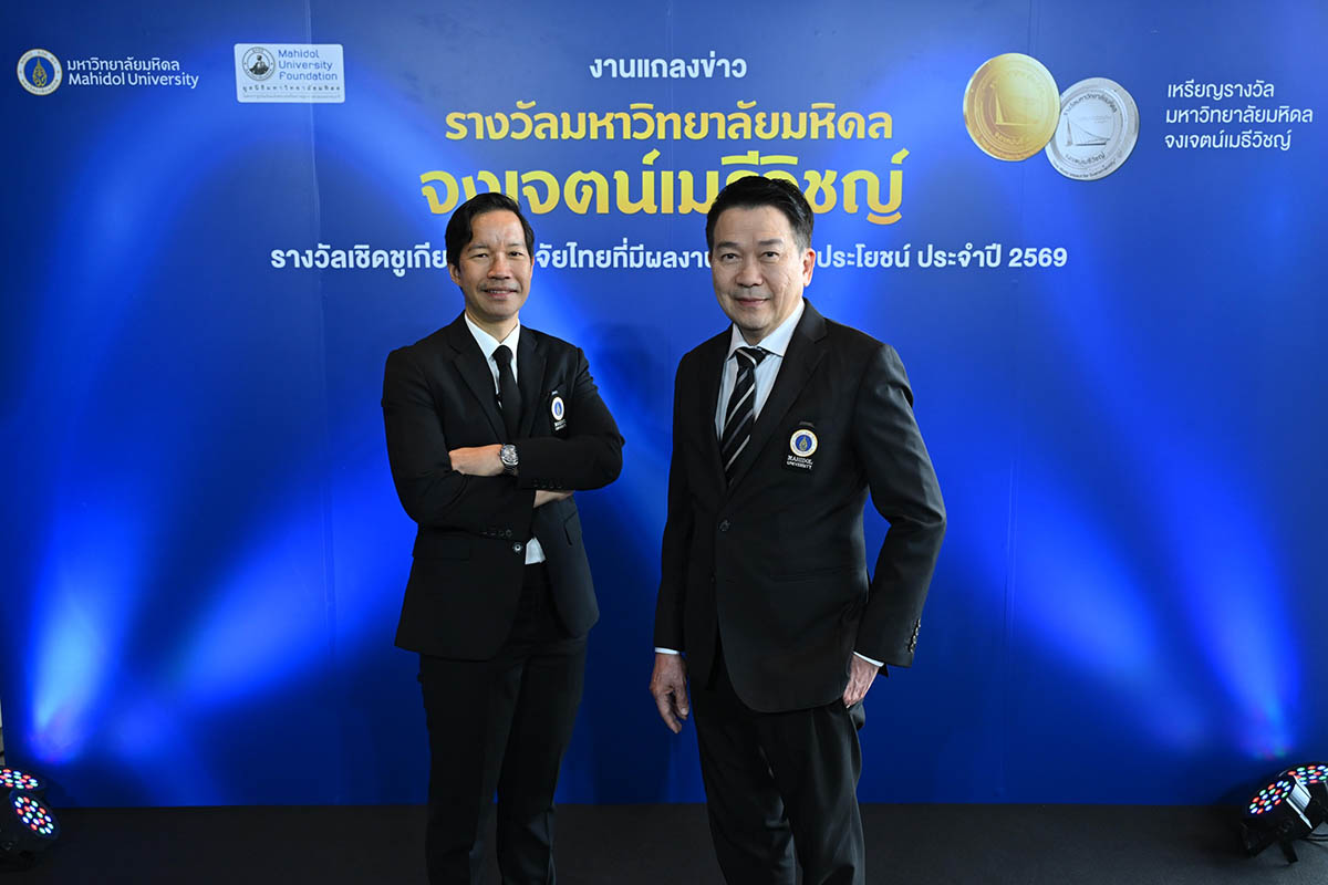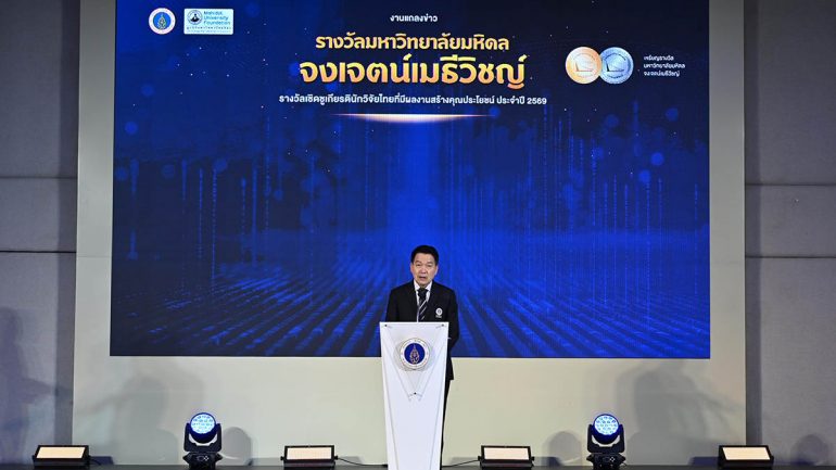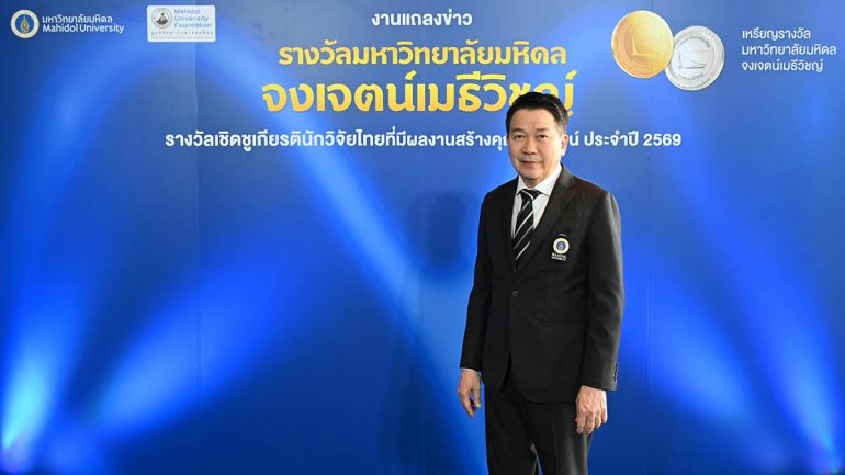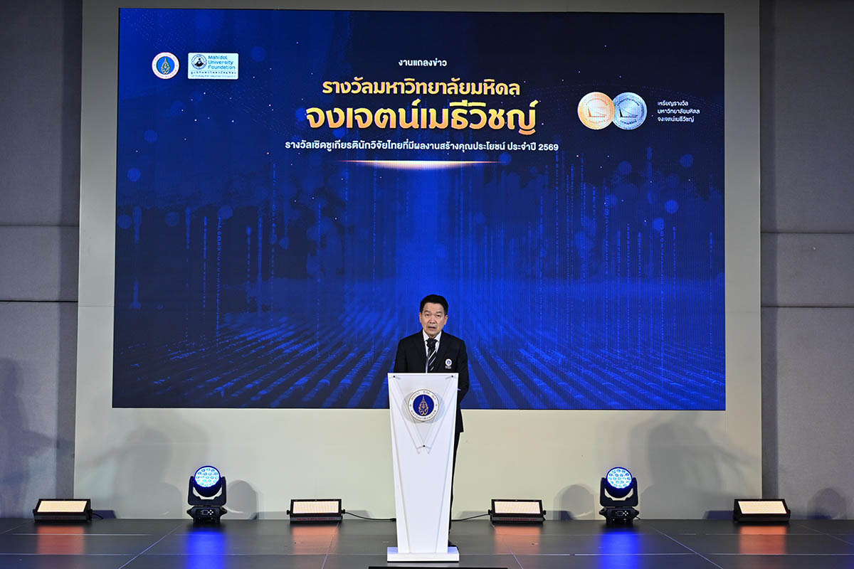 มหาวิทยาลัยมหิดล ตอกย้ำบทบาทผู้นำด้านการวิจัยและพัฒนานวัตกรรมที่มุ่งสร้างผลลัพธ์ที่จับต้องได้ เดินหน้าจัดงาน “รางวัลมหาวิทยาลัยมหิดล จงเจตน์เมธีวิชญ์” ประจำปี 2569 ต่อเนื่องเป็นปีที่ 2 เพื่อยกย่องนักวิจัยไทยที่มีผลงานโดดเด่นและสร้างผลกระทบเชิงบวกต่อประเทศ