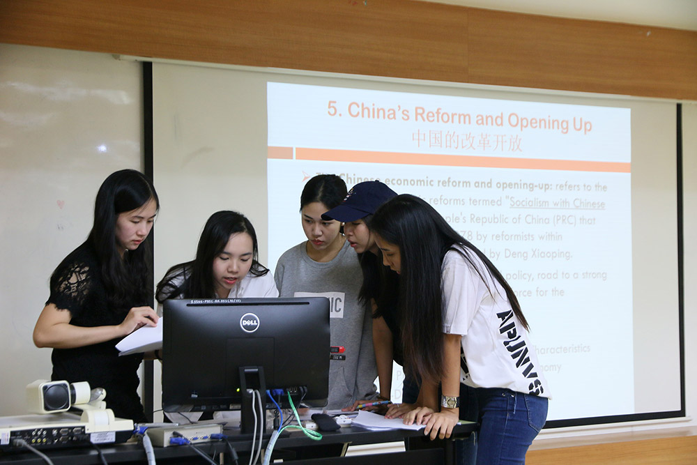 – หลายคนคงเคยได้ยินว่า สมัยนี้เรียนแค่สองภาษา คือ ภาษาไทยและภาษาอังกฤษ ถือว่าไม่เพียงพออีกต่อไปแล้ว หากใครได้ภาษาที่สาม จะถือว่ามีโอกาสหรือมูลค่าเพิ่มที่มากกว่าคนอื่น โดยเฉพาะการเรียนภาษาที่สามที่มีคนใช้สื่อสารมากที่สุดในโลกถึง 1.2 พันล้านคน อย่างภาษาจีนกลาง ยิ่งถือว่าเป็นการเรียนภาษาที่สามารถต่อยอดโอกาสในการทำงานในอนาคตได้อย่างมาก อีกทั้งความเจริญก้าวหน้าทางด้านเศรษฐกิจของจีน ที่ได้รับฉายาว่า “พญามังกรแห่งเอเชีย” เนื่องจากอัตราการเติบโตทางเศรษฐกิจที่คาดว่าจะก้าวกระโดดแซงอเมริกาในปี 2032 ดังนั้น ใครที่เห็นว่าจีนเป็นทางเลือกที่น่าสนใจในการศึกษาต่อระดับมหาวิทยาลัยนั้น มหาวิทยาลัยธรรมศาสตร์มีการเปิดสอนหลักสูตรจีนศึกษา โดยที่จะได้เรียนทั้งเรื่องเศรษฐกิจ การเมือง ภาษา และวัฒนธรรมเกี่ยวกับจีน นอกจากนี้หากเรียนหลักสูตรจีนศึกษา วิทยาลัยนานาชาติปรีดี พนมยงค์ ในปีที่ 3 จะได้มีโอกาสไปศึกษาแลกเปลี่ยนที่มหาวิทยาลัยคู่สัญญาในประเทศจีน ที่มีชื่อเสียงอันดับหนึ่งอย่างมหาวิทยาลัยปักกิ่ง หรือมหาวิทยาลัยอื่นๆ อย่างมหาวิทยาลัยเซี่ยงไฮ้ มหาวิทยาลัยฟูดั้น เป็นต้น เรียกได้ว่าตลอด 4 ปี จะได้เรียนทุกๆ ด้านเกี่ยวกับจีนอย่างลึกซึ้ง อีกทั้งได้รับประสบการณ์จากการไปศึกษาแลกเปลี่ยนที่จีนอีกด้วย