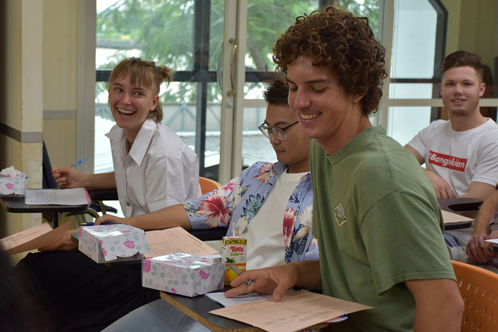 – หลักสูตรไทยศึกษา ที่มีการเรียนการสอนเป็นภาษาอังกฤษ ใช่แล้วล่ะ คนที่เรียนหลักสูตรนี้จะได้เรียนเกี่ยวกับเนื้อหาพัฒนาการความเป็นมาทางด้านเศรษฐกิจ การเมือง วัฒนธรรม รวมทั้งประวัติศาสตร์ของไทย ประยุกต์เข้ากับบริบทของโลกปัจจุบัน เป็นภาษาอังกฤษทั้งหมด หลักสูตรนี้คนที่เรียนส่วนใหญ่เป็นนักศึกษาชาวต่างชาติที่สนใจบริบทความเป็นไทย แต่ก็มีคนไทยที่เรียนหลักสูตรนี้เช่นกัน หลายคนอาจตั้งคำถามว่า เป็นคนไทยแล้วจะเรียนไทยศึกษาไปทำไม การเรียนไทยศึกษาก็เพื่อทำความเข้าใจบริบททางสังคมของไทยที่มีความซับซ้อน ผ่านการเรียนการสอนเป็นภาษาอังกฤษ เพื่อให้ผู้ที่ศึกษาสามารถนำความรู้เกี่ยวกับบริบทสังคมไทย ไปประยุกต์ใช้กับบริบทโลก และสามารถถ่ายทอดให้กับชาวต่างชาติได้รับรู้ถึงความเป็นไทยที่ลึกซึ้ง สำหรับหลักสูตรไทยศึกษา เป็นหนึ่งในหลักสูตรของวิทยาลัยนานาชาติปรีดี พนมยงค์ ซึ่งในหลักสูตรนี้ ผู้เรียนสามารถสมัครเข้าร่วมโครงการศึกษาแลกเปลี่ยนในมหาวิทยาลัยคู่สัญญาอย่าง University of California หรือมหาวิทยาลัยอื่นๆ ที่มีชื่อเสียงได้ หรือการไปศึกษาหลักสูตรสองปริญญา (Double Degree) ณ มหาวิทยาลัยคู่สัญญา คือ School of Oriental and African Studies (SOAS) University of London โดยจะต้องศึกษาที่วิทยาลัยนานาชาติปรีดี พนมยงค์ 2 ปี และที่มหาวิทยาลัยคู่สัญญาอีก 2 ปี