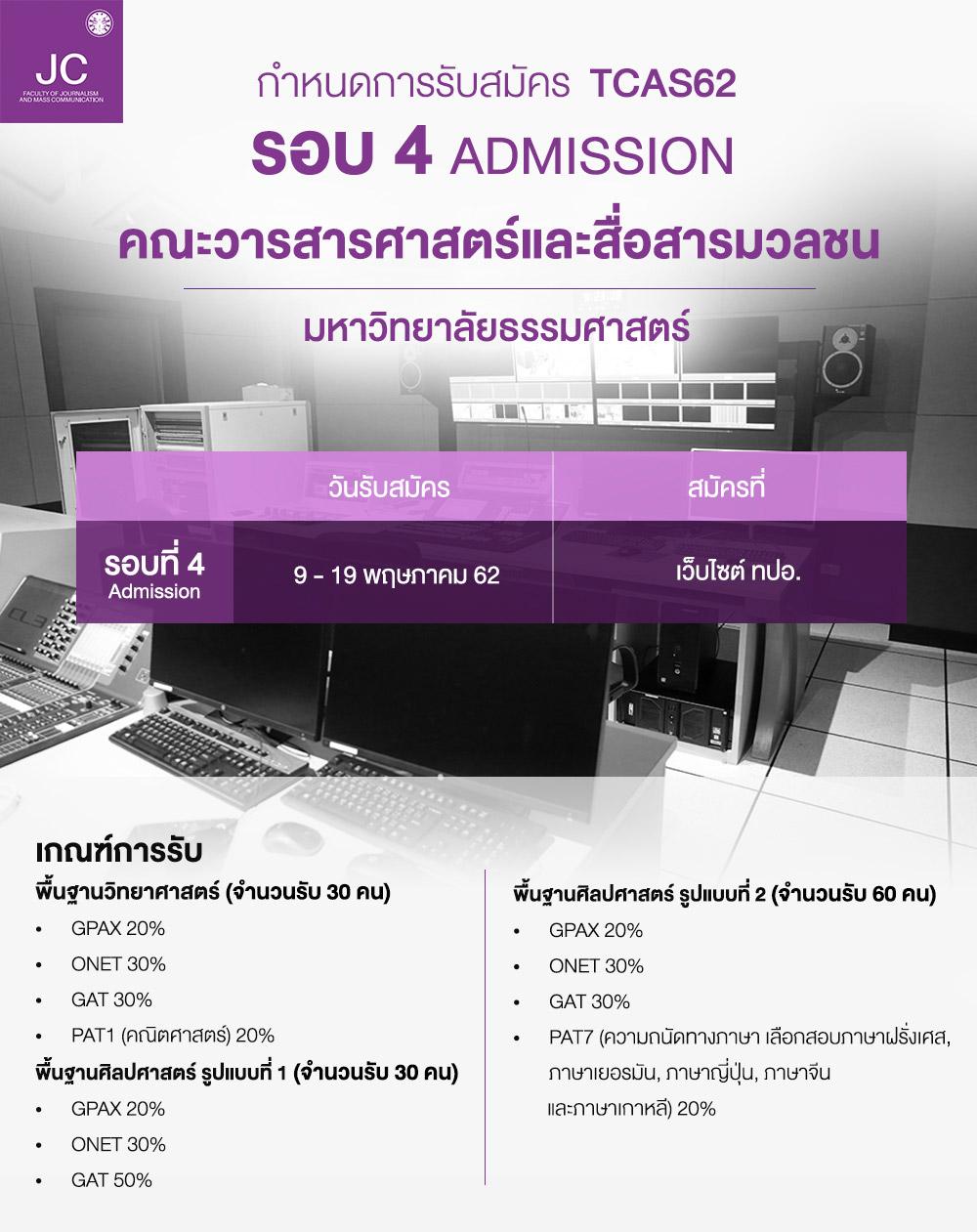 รับสมัครทางเว็บไซต์ www.jc.tu.ac.th/bjm
