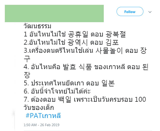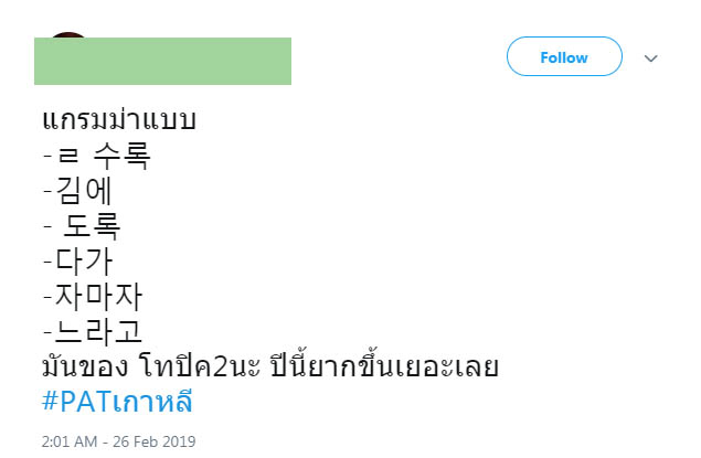 PAT 7.7 หรือ PAT ภาษาเกาหลี เป็นข้อสอบที่เพิ่งนำมาใช้เพียงแค่ไม่กี่ปี จึงยังไม่มีข้อสอบเก่าจาก สทศ. ให้น้องๆ ได้ลองดาวน์โหลดไปทำ เพื่อศึกษาลักษณะข้อสอบว่าข้อสอบเป็นอย่างไร เราจึงได้รวมคำถามข้อสอบ PAT 7.7 ของปีนี้เอาไว้ เพื่อจะเป็นตัวอย่างให้กับน้องๆ รุ่น 63 ที่เตรียมจะสอบเป็นรุ่นถัดไป ว่า PAT 7.7 เขาออกอะไรกัน ซึ่งในปีนี้ก็ได้ข่าวว่ายากมาก น้องๆ ออกจากห้องสอบมาบ่นกันเต็มทวิตเตอร์ พร้อมติดแฮชแท็ก #PATเกาหลี สรุปแล้วข้อสอบปีนี้ยากขนาดไหนมาดูกัน