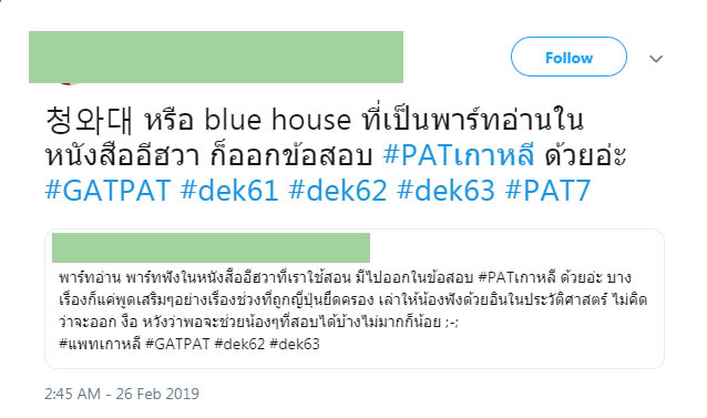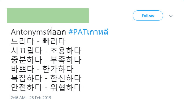 จบลงไปแล้วกับการสอบ GAT – PAT ของปี 62 โดยในวันสุดท้ายของการสอบ นั่นก็คือวันที่ 26 ก.พ. 62 เป็นวันสอบ PAT 6 ความถนัดทางศิลปกรรมศาสตร์ และข้อสอบ PAT 7 ความถนัดด้านภาษา ซึ่งมีทั้งหมด 7 ภาษาด้วยกัน และข้อสอบที่เราจะมารีวิวในวันนี้ก็จะเป็นข้อสอบ PAT 7.7 หรือ PAT ภาษาเกาหลี ว่าจะมีชุดคำถามอะไรบ้าง ปีนี้ข้อสอบยากมากแค่ไหน