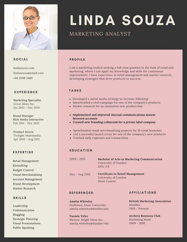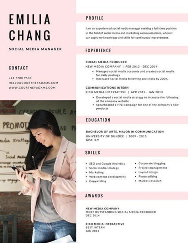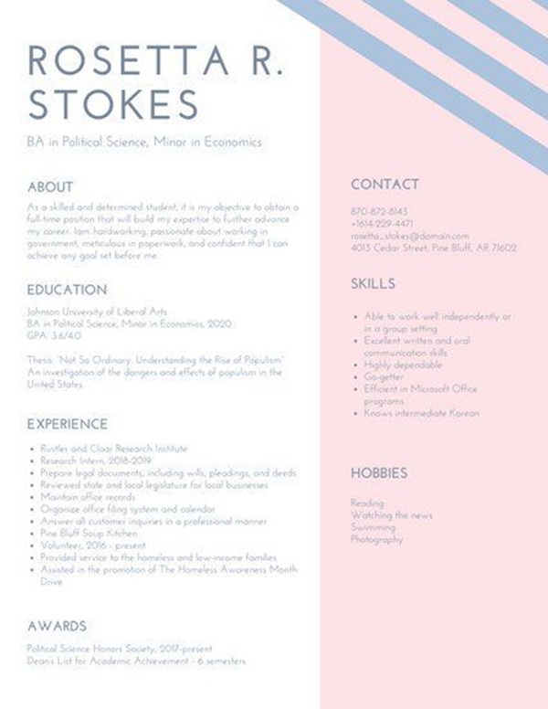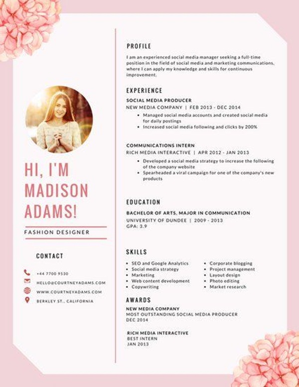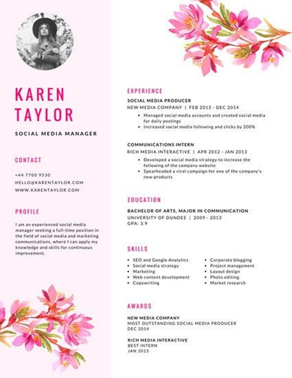 การส่ง Resume หรือประวัติแนะนำตัว ประวัติผลงานไปก็สำคัญ หากทำรูปแบบให้สวยงามน่าอ่านก็สร้างความประทับใจกับ HR ได้เช่นกันค่ะ แคมปัส-สตาร์ ขอรวมรูปแบบการสร้างสรรค์รีซูเม่มาให้น้องๆ ได้ดูเป็นไอเดีย คอนเทนต์นี้ขอรวมเฉพาะโทนสีชมพูเท่านั้นนะคะ สายหวานตามมาเลย