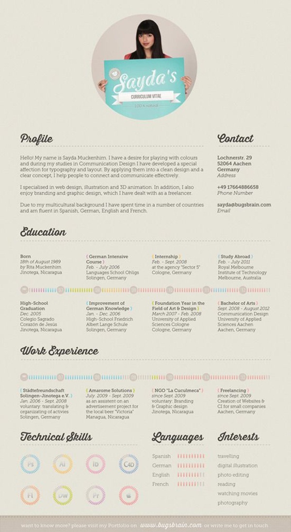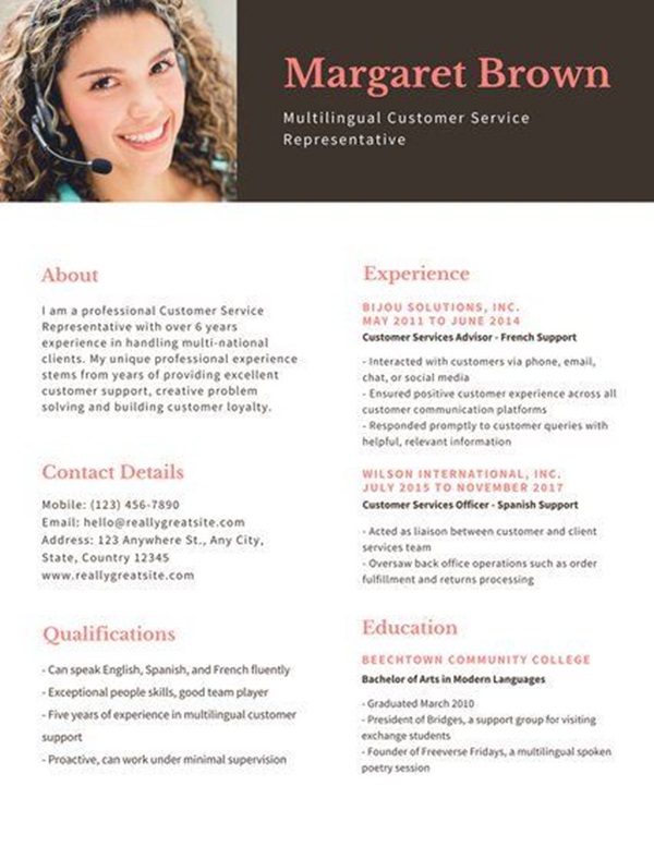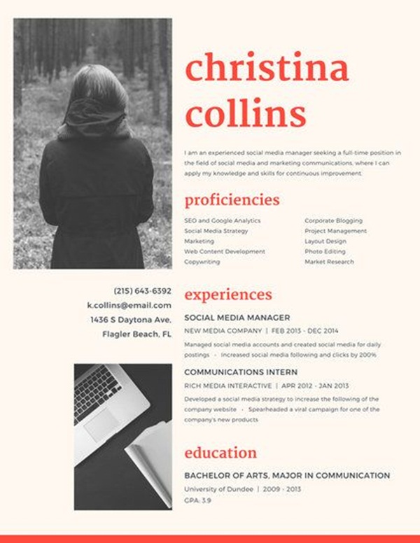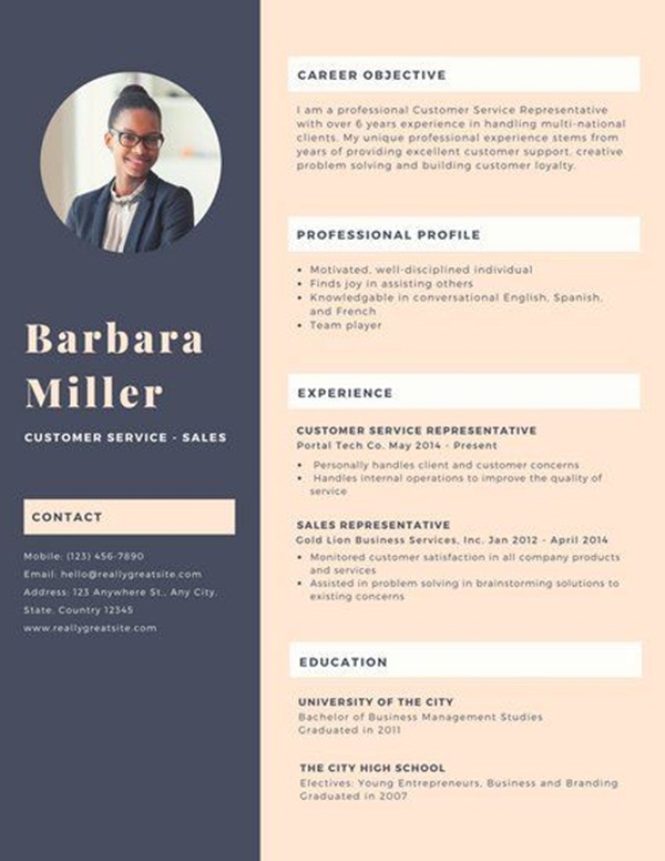 จะเลือกรูปภาพของตนเองที่ใส่เครื่องแต่งกายให้สีโทนเดียวกับรีซูเม่แบบนี้ก็ดูเก๋ และมีความเพอร์เฟค
