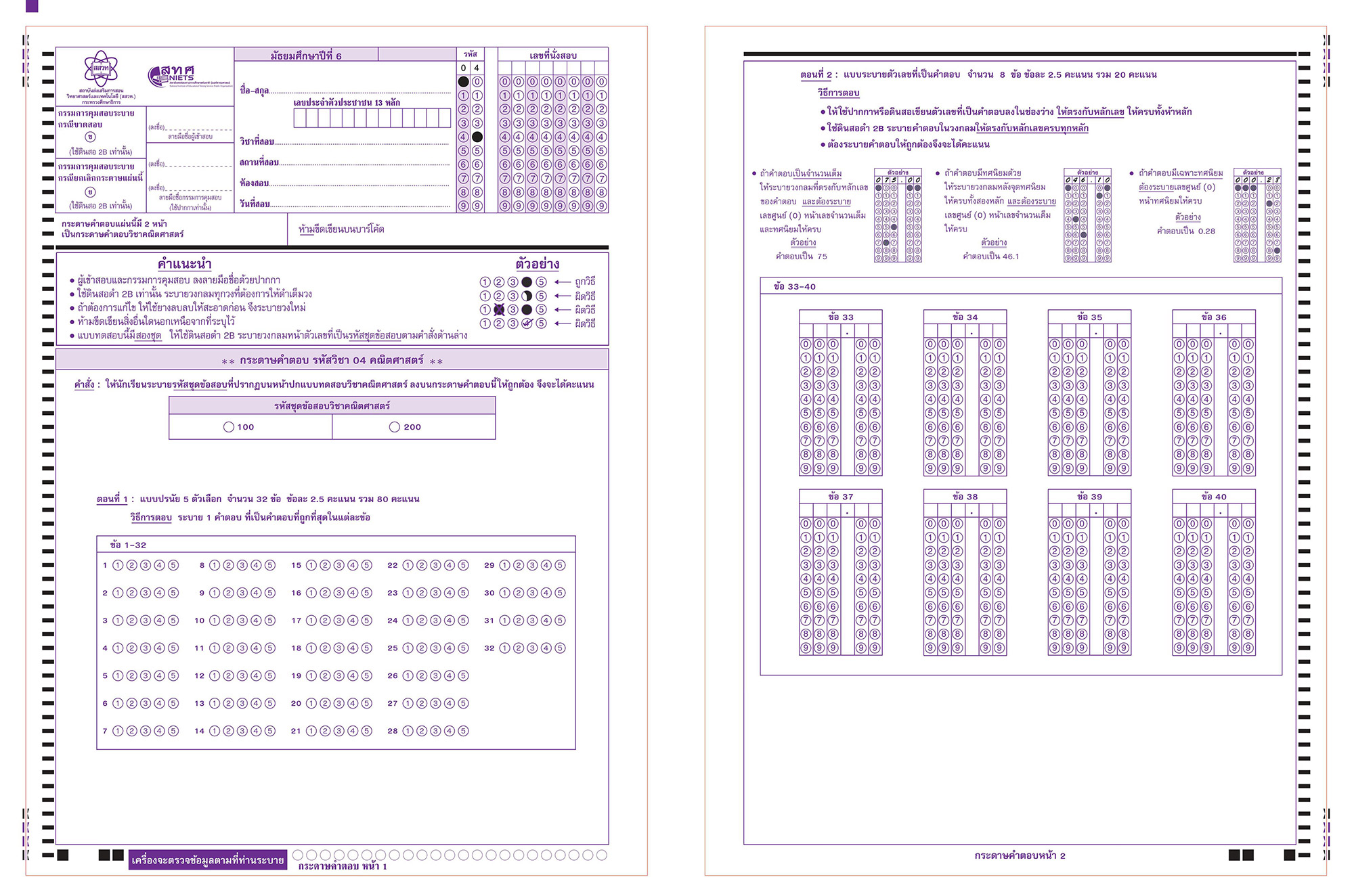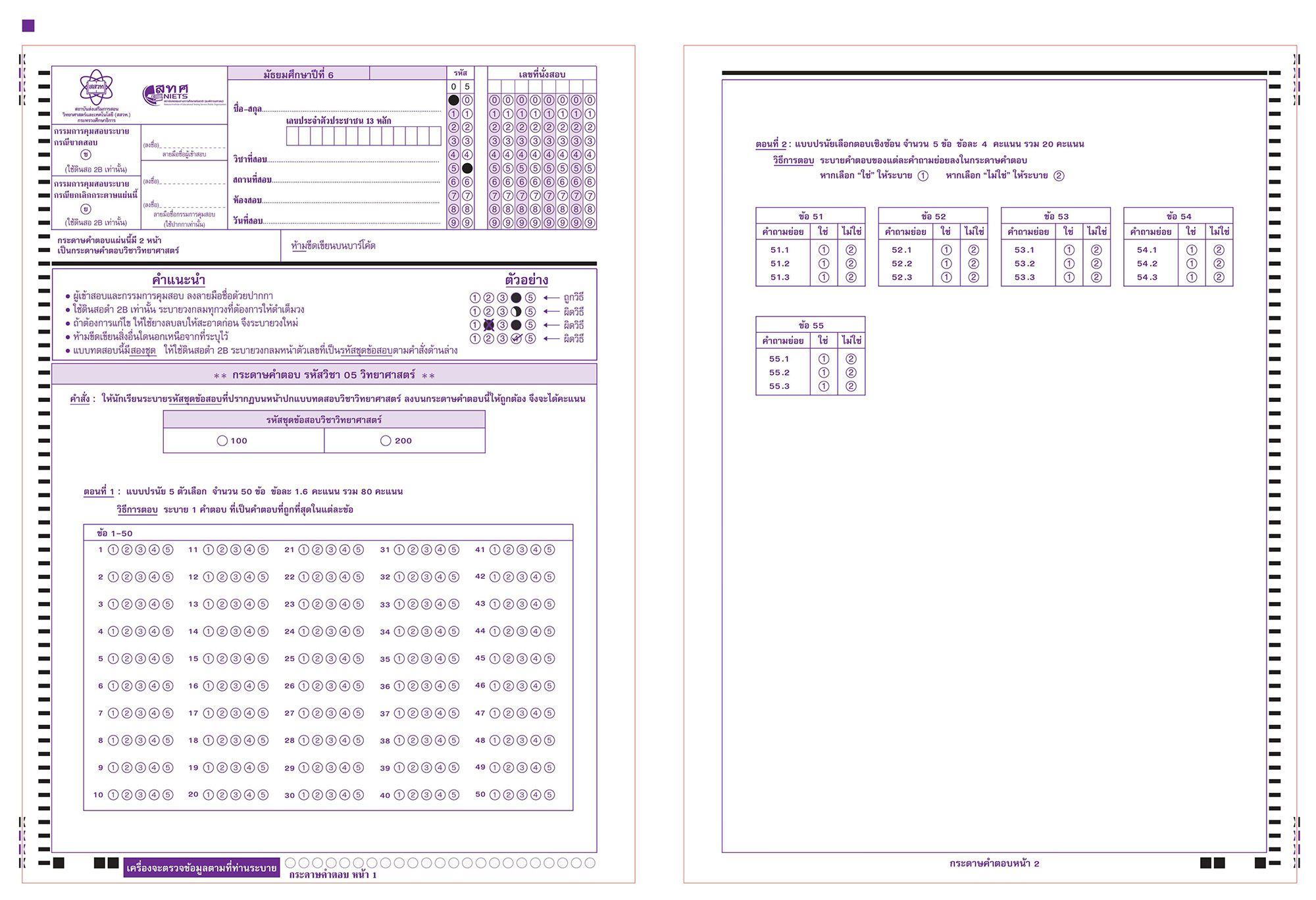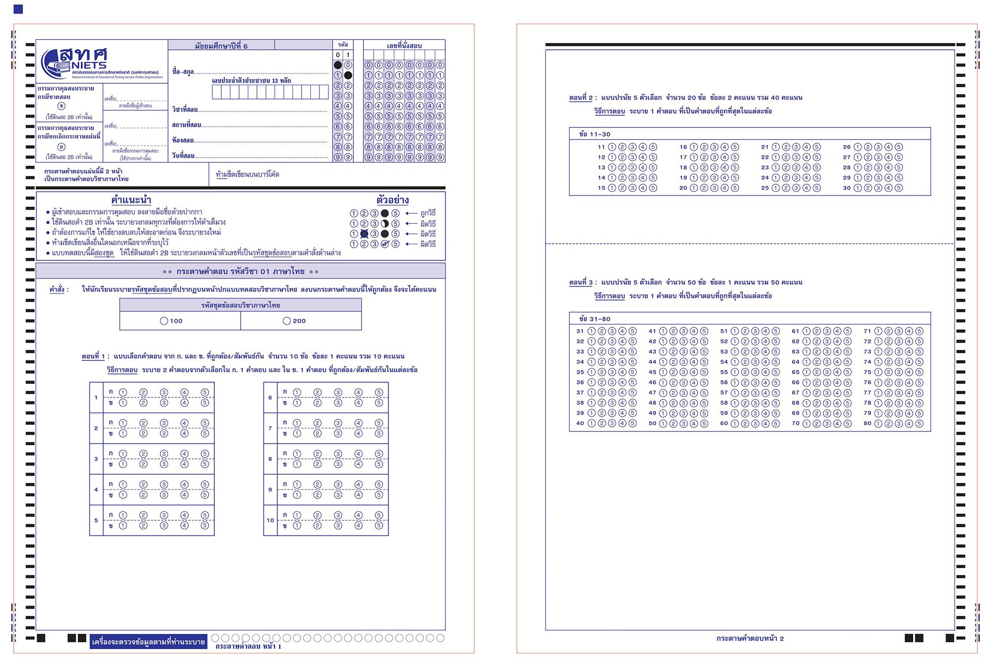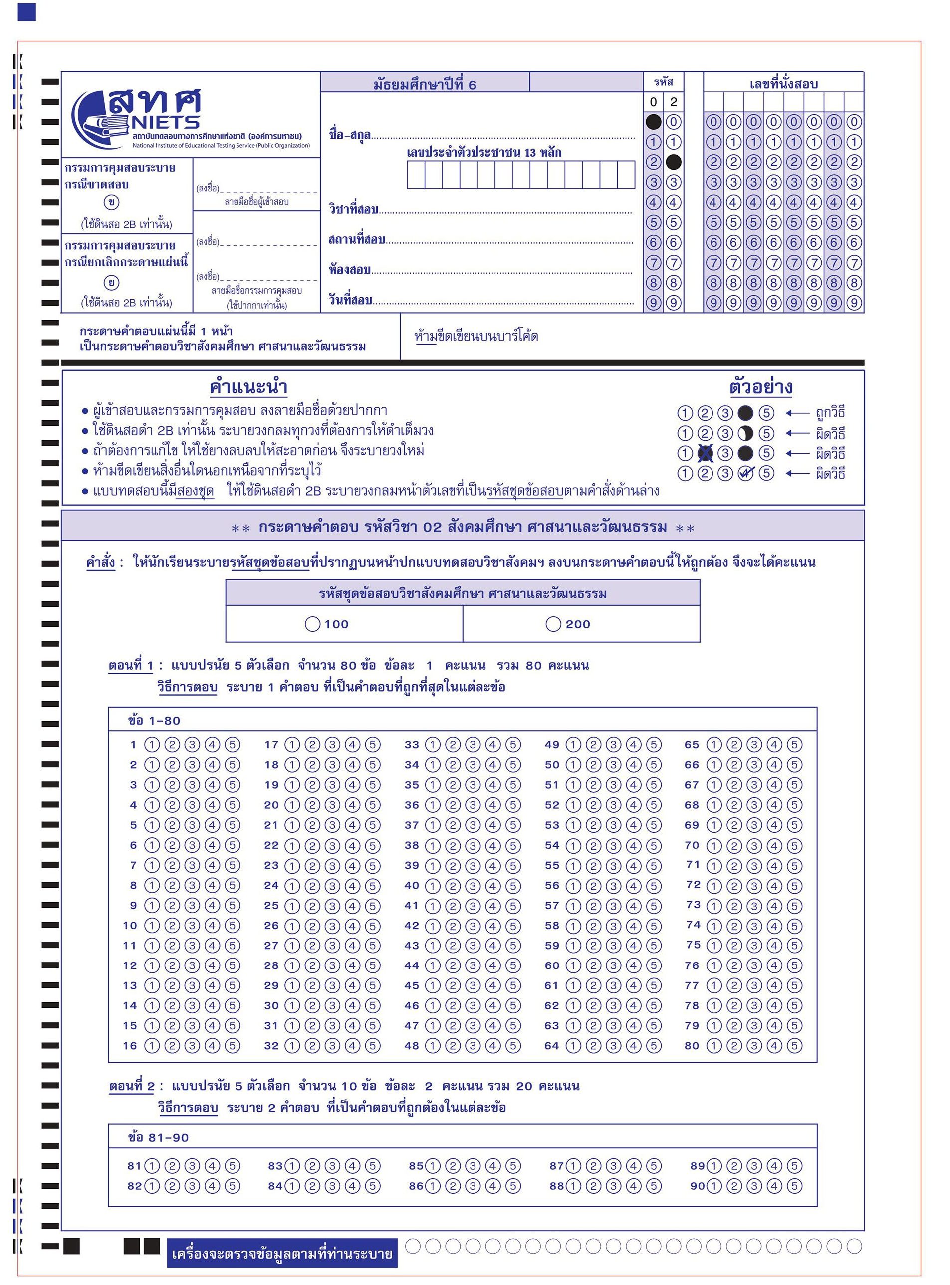 ตัวอย่างกระดาษคำตอบ วิชาภาษาไทย | วิชาสังคมศึกษา | วิชาภาษาอังกฤษ | วิชาคณิตศาสตร์ | วิชาวิทยาศาสตร์