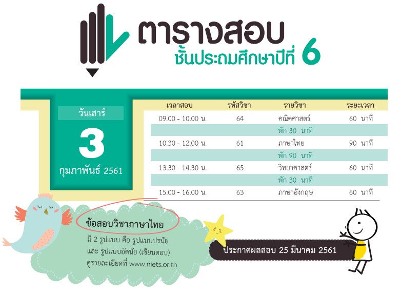 นักเรียน ป.6 ประกาศผลสอบวันที่ 25 มีนาคม 2561