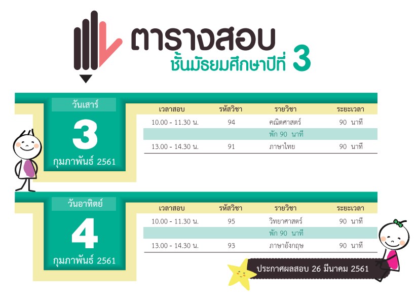 นักเรียน ม.3 ประกาศผลสอบวันที่ 26 มีนาคม 2561