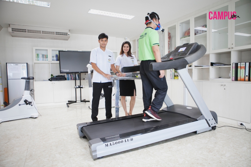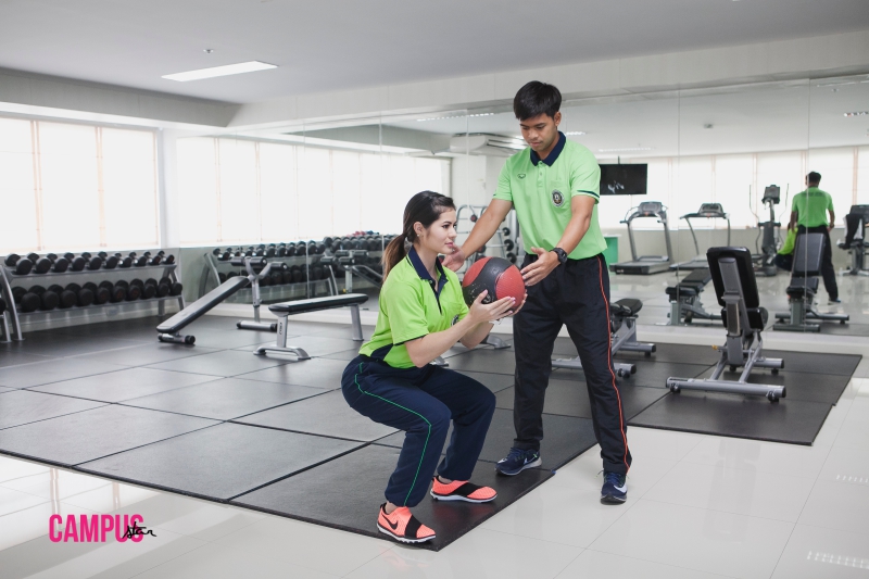 เฟิร์ส : พวกเราเรียนในสาขาวิชาวิทยาศาสตร์การกีฬา ปีแรกจะเรียนพื้นฐานด้านกายวิภาคศาสตร์ กล้ามเนื้อ กระดูก รวมไปถึงกระบวนการทำงานของร่างกาย ซึ่งค่อนข้างยาก เพราะเป็นศัพท์เฉพาะที่ต้องใช้ภาษาอังกฤษล้วน แต่พอปีถัดๆไป ก็ได้เรียนทั้งด้านโภชนาการและสรีรวิทยา การป้องกันการบาดเจ็บทางการกีฬา เทคโนโลยีทางการกีฬา และหลักการออกกำลังกายที่ถูกต้อง