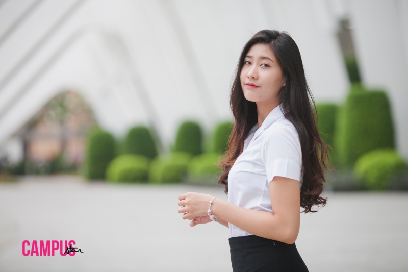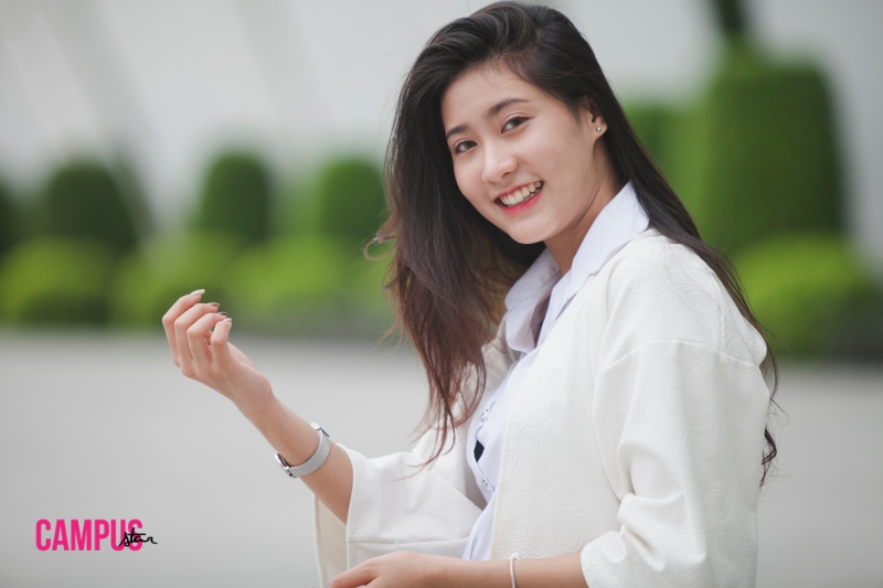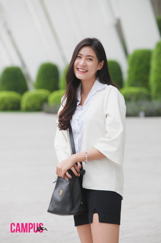 สเปกหนุ่มโดนใจ : ชอบแบบตี๋ๆ ขาวๆ แล้วในม.รังสิตคนหน้าตาดีมีเยอะ เวลาไปเจอเราก็จะ “อุ้ยย” แต่เราก็นิ่งไว้ก่อน เพื่อนก็จะรู้กันแล้วชอบแซวว่า “เฮ้ยๆ” ทำให้หนูเขินเล่นๆ (หัวเราะ)