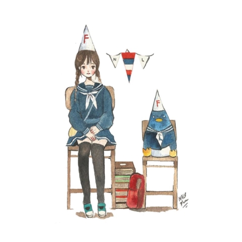 ตอนนั้นจำได้ว่าเพื่อนเคยเปิดงานของรุ่นพี่นิเทศน์ให้ดู ชื่อเพจว่า “จัง”กับ “ไอ ซี อี”ครับ ตอนนั้นเพิ่งใช้สีน้ำ รู้สึกว่างานเค้ามีสเน่ห์ทั้งสองคนเลย อยากทำได้แบบเค้าบ้าง ก็เลยยิ่งฝึกให้หนักทุกเย็นหลังเลิกเรียนครับ ส่วนการวาดภาพของผมนั้นส่วนใหญ่ก็มาจาก สิ่งรอบๆ ตัวในชีวิตประจำวัน เช่น จากการดูหนัง ดูซีรีส์ เล่นเกม ฟังเพลง ส่วนมากผมจะชอบเสพย์งานของเกาหลี พอคิดไอเดียได้ก็จะจดเก็บไว้ในสมุดเพื่อนำมาใช้กับงานครับ