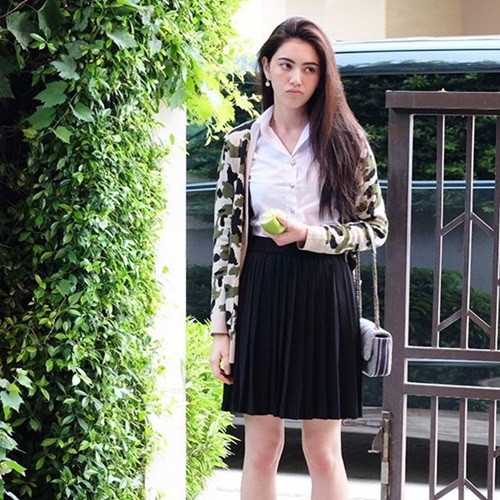 ใหม่ ดาวิกา ในลุคนักศึกษาวันไปเรียน