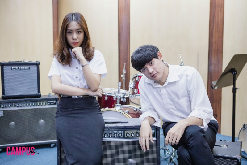 ออย-นิว : อยากเชิญชวนน้องๆ ที่ชอบดนตรี รู้สึกว่าดนตรีไม่ได้เล่นคนเดียวแน่นอน ที่นี่เหมาะสมที่สุด เพราะเราอยู่กันเป็นครอบครัว ช่วยเหลือกันตลอด สำหรับคนที่อยากจะพัฒนาและค้นหาตัวเอง ที่นี่ก็ตอบโจทย์ที่สามารถจะค้นหาตัวเองได้ ส่วนน้องๆ บางคนที่รู้สึกว่า เราชอบดนตรี แต่เรายังไม่เก่ง รู้สึกยังไม่พร้อมที่จะมาเรียนดนตรีจริงจัง อยากให้ลบความคิดนั้นทิ้งไป เพราะอย่างเพื่อนบางคนที่เรียนด้วยกันหลายคน เข้ามาแรกๆ ไม่เก่งเลย แต่ทุกวันนี้กลายเป็นคนเก่งที่พัฒนาขึ้นมากๆ เพราะฉะนั้น ไม่ได้ขึ้นอยู่กับว่า ณ ตอนนี้เรามีสกิลขนาดไหน แต่มันขึ้นอยู่กับว่าในทุกๆ วันที่เราเข้ามาเรียนแล้ว เราเก่งกว่าเมื่อวานหรือเปล่า