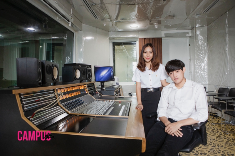 นิว : ตอนม.ปลายก็รู้แล้วว่าชอบดนตรี ผมชอบเล่นกีต้าร์มาตั้งแต่เด็ก พอตอนม.ปลายก็มาทำวง Gliss กับเพื่อนๆ พี่ๆ อยู่ด้วย รู้เลยว่าในอนาคตเราต้องทำงานสายนี้แน่ๆ ก็เลยลองไปค้นหาข้อมูลมหา’ลัยที่สอนดนตรี ก็ไปเจอที่นี่มีเปิดสอนด้านการผลิตเพลง เราก็ชอบแบบนี้ ก็เลยลองไปสอบ แล้วก็ติดครับ