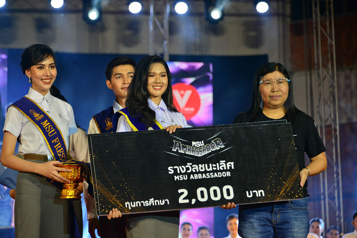 ผลการประกวด MSU AMBASSADOR 2020 ชนะเลิศ (ฝ่ายชาย) ได้แก่ นายธีรวิทย์ อุดมโภคาทรัพย์ คณะการบัญชีและการจัดการ ชนะเลิศ (ฝ่ายหญิง) ได้แก่ นางสาวธัญญรัตน์ บุตริน คณะวิทยาการสารสนเทศ