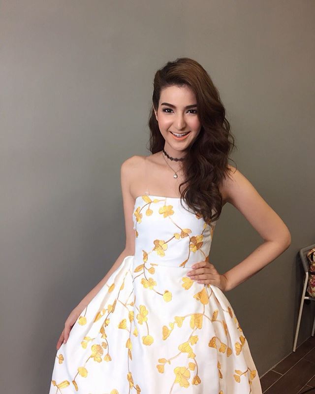 ดาราลูกครึ่งไทย-ฝรั่งเศส ไหยหยา ในชุดเดรสเกาะอก
