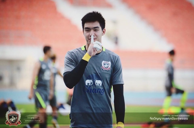 นักบอลหล่อ ตี๋ บุญยเกียรติ ผู้รักษาประตูสโมสรสุพรรณบุรีเอฟซี