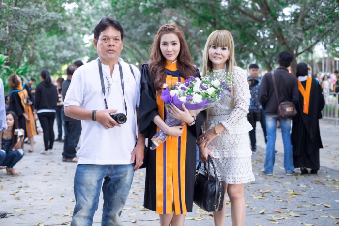 แคมปัส-สตาร์ ขอแสดงความยินดีกับดีเจสาวสวย กล้วยไม้ พิกุลแย้ม หรือ ดีเจแคท แห่งคลื่น MONO FRESH 91.5 เรียนจบจากรั้วมหาวิทยาลัยเกษมบัณฑิตแล้ว แถมยังคว้าเกียรตินิยมอันดับ 2 จากคณะนิเทศศาสตร์ สาขาการประชาสัมพันธ์ มาครองด้วย สวยเก่งขนาดนี้ต้องขอปรบมือให้เลย เรามีภาพเก็บตกบรรยากาศวันรับปริญญามาให้รับชมด้วยค่ะ งานนี้คุณพ่อคุณแม่ของสาวแคท และเพื่อนๆ ดีเจไปร่วมแสดงความยินดีกับเธอกันด้วย