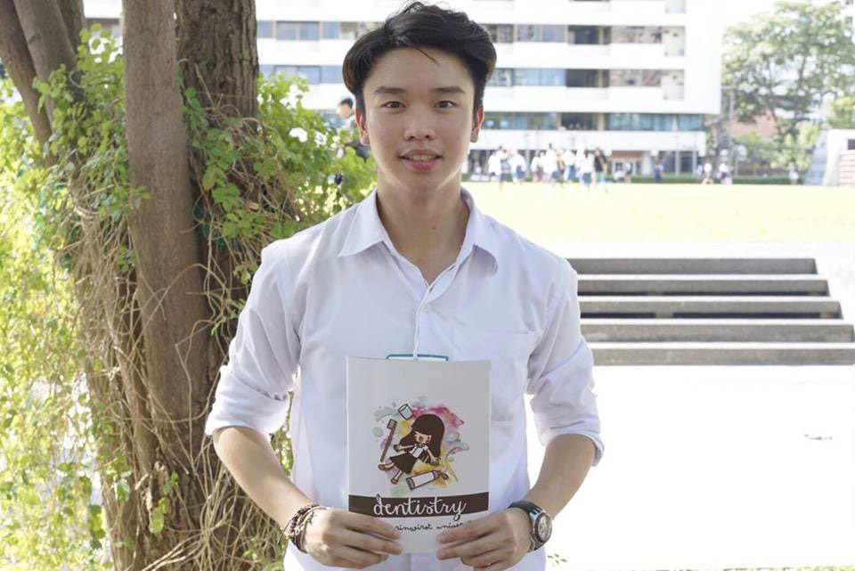 ตอนแรกก็ไม่ได้คิดว่าจะต้องเป็นทันตแพทย์ตั้งแต่แรก เพราะคะแนนมันได้ 2 ที่ครับ ได้ทั้งทันตแพทยศาสตร์ และวิศวกรรมศาสตร์เลย ผมก็มีให้ที่บ้านช่วยเลือกว่าอย่างไหนจะดีกว่ากัน สุดท้ายก็เลือกเป็นทันตแพทย์ เพราะส่วนตัวก็รู้สึกว่าเราไม่ได้คล่องไม่ได้เก่งเลขมาก เรียกได้ว่าไม่ชอบเรื่องตัวเลขเลย แล้วถ้าเลือกเรียนวิศวกรรมก็จะมีตัวเลขเข้ามาเกี่ยวข้องด้วย ผมเลยเลือกมาทางคณะทันตแพทย์มากกว่า ลงตัวทั้งตัวผมเองแล้วก็ที่บ้านด้วย