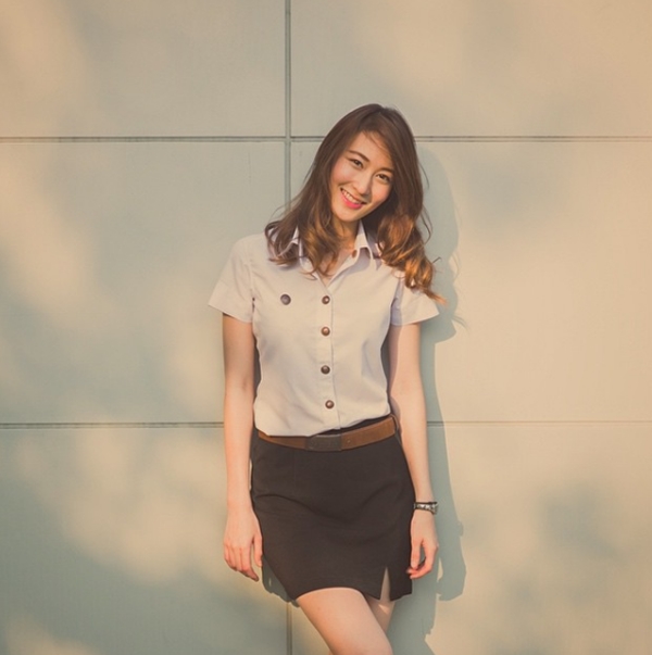 อีกหนึ่งลุคในชุดนักศึกษา กับรองเท้าผ้าใบ เท่ไปเลยค่ะ