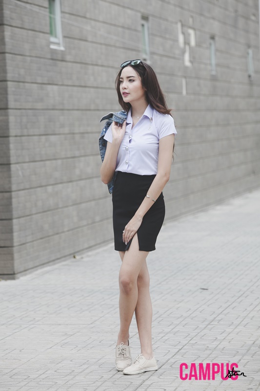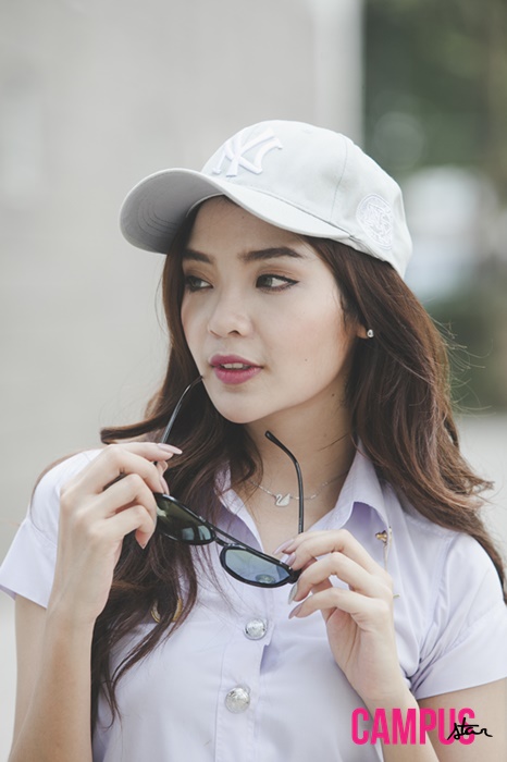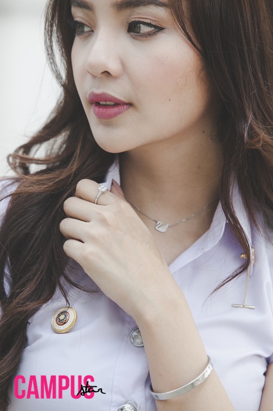 “ตอนแรกเรียนคณะเทคโนโลยีสารสนเทศ ด้านคอมพิวเตอร์กราฟิก เพราะว่าเป็นคนชอบวาดรูป แต่พอเข้าเรียนจริงๆ ไม่ได้วาดรูป แต่เป็นการเขียนโค้ดมากกว่า ก็เลยรู้สึกไม่ใช่ตัวเราแล้ว เลยย้ายมาทางนิเทศฯ คิดว่าเป็นสายที่เราทำงานอยู่แล้ว พอมาเรียนก็สนุกดี สังคมก็ต่างกันด้วย สารสนเทศเขาไม่นั่งเม้าท์เรื่องไม่มีสาระเหมือนเด็กนิเทศฯ (หัวเราะ) นิเทศฯ นี่มีเรื่องเม้าท์กันได้ตลอดเวลา การแต่งตัวก็หลากหลายมาก บางคนมาเซอร์ บางคนก็จัดเต็ม แต่หนูจะเป็นแนวสบายๆ ไม่แต่งหนักมาก ชุดนักศึกษาก็จะมีเสื้อคลุมนิดหนึ่ง กับรองเท้าผ้าใบ บางวันตื่นมาไม่แต่งหน้าไปแบบซีดๆ ก็มี แต่บางทีนึกจะแต่งก็แต่ง ในกลุ่มที่สนิทก็มี 3 คน ส่วนใหญ่เป็นสาวประเภทสอง ของเราเน้นสายฮาค่ะ ไม่เน้นสวย อิอิ มีอัพเดทกันเรื่องแฟชั่นบ้าง อย่างเทรนด์แต่งหน้าหรือทำสีผม”