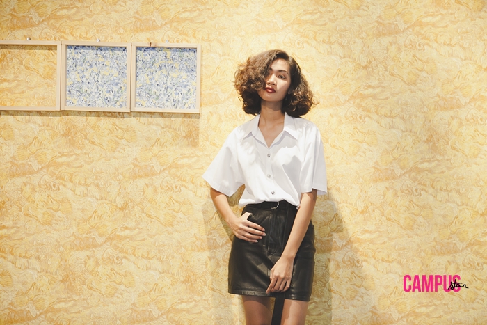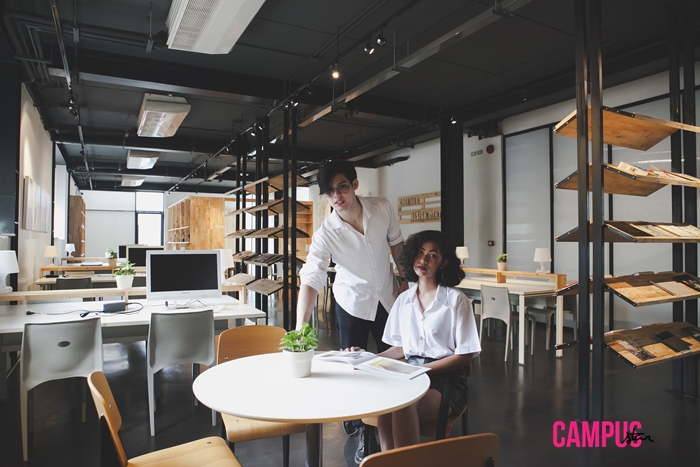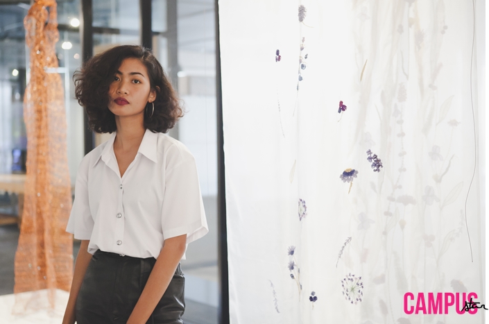 เด็กออกแบบทุกคนมีของค่ะ ตั้งแต่เข้ามาแรกๆ ก็เหมือนรวมคนติสท์ๆ ที่มีสไตล์ของตัวเอง อย่างตอนรับน้อง ที่เรียกว่าลงลาน เราก็จะมีกิจกรรมอย่างเช่นให้เดินไปรอบมอแล้วตะโกนว่าเราเลือดสีอะไร เหมือนประกาศให้โลกรู้ว่าเราเด็กศิลปกรรมนะ มันเจ๋งดี ส่วนของพวกเราแฟชั่นก็จะมีที่รวมตัวกันคือชั้น 9 หลายคนจะเรียกกันในนาม “นางฟ้าชั้น 9” (หัวเราะ) คือทุกคนจะมีเอกลักษณ์ มีสไตล์ของตัวเอง อาจารย์บอกเลยว่า ไม่ว่ายูจะใส่อะไรมา ยูต้องใส่สีดำนะ ขาวดำ ใส่รองเท้าก็ต้องห้ามเห็นเล็บเท้า วันไหนถ้ายูส่งงาน ไม่ว่าจะโทรมแค่ไหน ก็ต้องแต่งหน้ามา ห้ามป่วย คือมันไม่ใช่การเหยียดกัน แต่มันคือการฝึกตัวเอง เพราะเราเป็นดีไซเนอร์ ถ้าเรายังทำได้แค่นี้ แล้วยูจะไปแต่งตัวหรือจะไปทำงานให้ใครได้