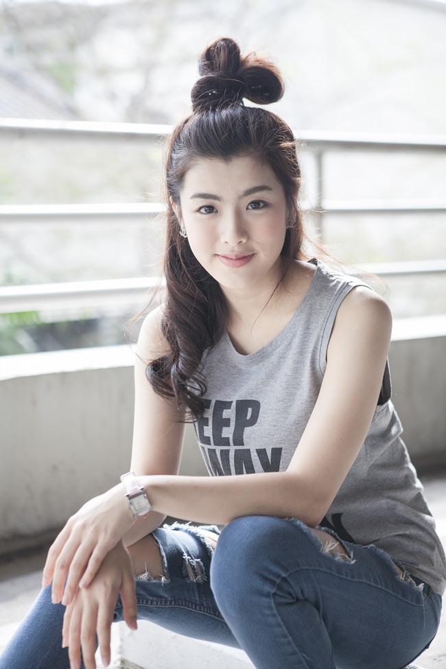 เมนูง่ายๆ ในคอนโดไม่มีอะไรมาก มาม่า ไข่ต้มนี่แหละ (หัวเราะ) เพราะบางทีเรียนเช้าสุดแปดโมง เราอยู่คนเดียว ก็ไม่ค่อยมีเวลาทำอะไร ต้องรีบเดินทางไปเรียน เพราะว่าระยะทางจากคอนโดไปมอก็ต้องใช้เวลานิดหนึ่ง ถ้าเป็นวันหยุดก็จะชอบว่ายน้ำ ออกกำลังกายบ้าง อยู่ในห้องก็จะดูทีวี ดูหนัง ฟังเพลงมากกว่าค่ะ หนังสือไม่ค่อยได้อ่าน หนังก็เป็นแนวเกาหลีรักกุ๊กกิ๊ก แต่ไม่ได้เป็นติ่งนะ (หัวเราะ) เพลงชอบสไตล์ป๊อปใสๆ ฟังสบายๆ อย่างเพลงที่ชอบล่าสุดก็จะเป็นเพลง “อ้าวเฮ้ย” ของพี่อะตอม-ชนกันต์ ส่วนถ้าเวลาใกล้สอบหน่อย ก็จะมีเพื่อนๆ มารวมตัวกันในห้องเบล แล้วก็จะมีติวกันดึกๆ เพราะว่าส่วนใหญ่แต่ละคนจะมีชมรมของตัวเอง เวลาเลิกก็ไม่ตรงกัน ก็เลยนัดกันดึกๆ แล้วก็อยู่กันทั้งคืนเลย อย่างช่วงนี้วิชาที่ติวหนักหน่อยก็จะเป็นสแตท เพราะสายนิเทศฯ ให้มาเรียนเกี่ยวกับตัวเลขก็ไม่ค่อยถนัดกันเท่าไหร่ ก็ต้องมาดูว่า ใครไม่เข้าใจตรงไหนกันบ้าง มาระดมความคิดช่วยๆ กันติว