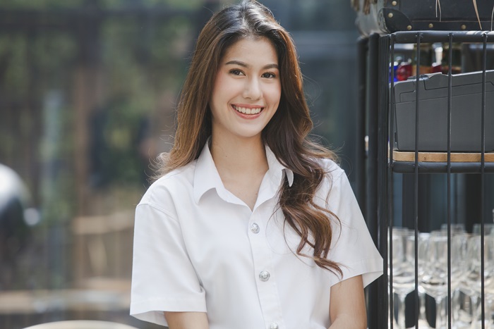ส่วนตัวพลอยจะเป็นคนที่ร่าเริงมาก ยิ้มง่าย อยู่มอกับเพื่อนๆ ยิ่งสนุกเข้าไปอีก ก็จะชอบเล่นกันเสียงดัง มีหลายครั้งเลยที่ก็พูดๆ อยู่ในกลุ่ม แล้วจู่ๆ คนอื่นเขาก็เงียบกันหมด มีพลอยพูดเสียงดังอยู่คนเดียว แล้วไม่ใช่เสียงดังธรรมดานะ ดังมากกกกกก เราก็ อ้าว! เขาได้ยินเราพูดคนเดียวหมดเลย ..