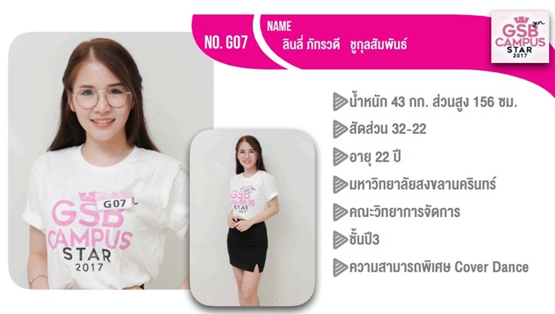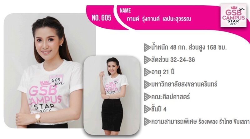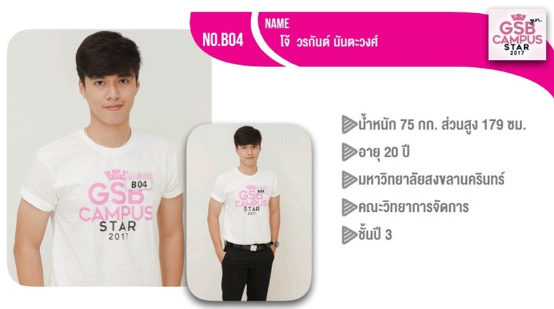 มารอลุ่นกันค่ะว่าวันนี้ หนุ่มสาวทั้ง 21 คนนี้ ใครจะได้ครองแชมป์ภาคใต้ เพื่อเป็นตัวแทนไปแข่งขันการเฟ้นหาสุดยอดหนุ่มสาวมากความสามารถ ครองตำแหน่ง GSB Gen Campus Star ประจำปี 2560