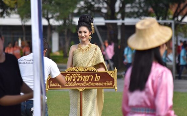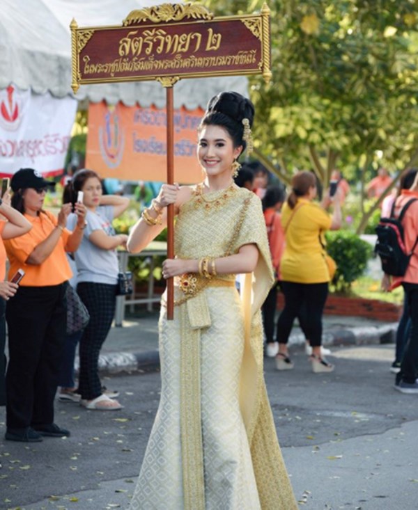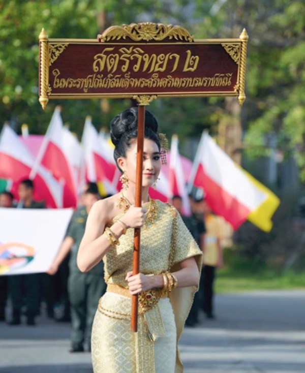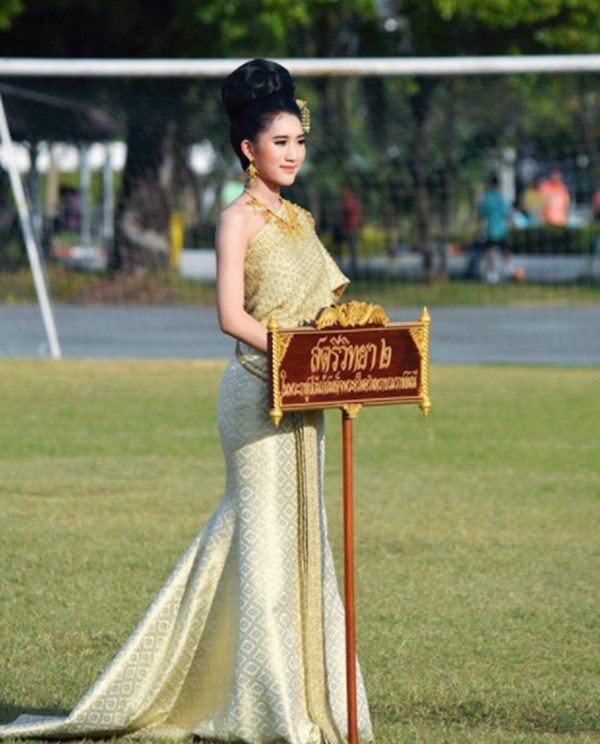 น้องเบสท์ ตัวแทนถือป้ายโรงเรียน