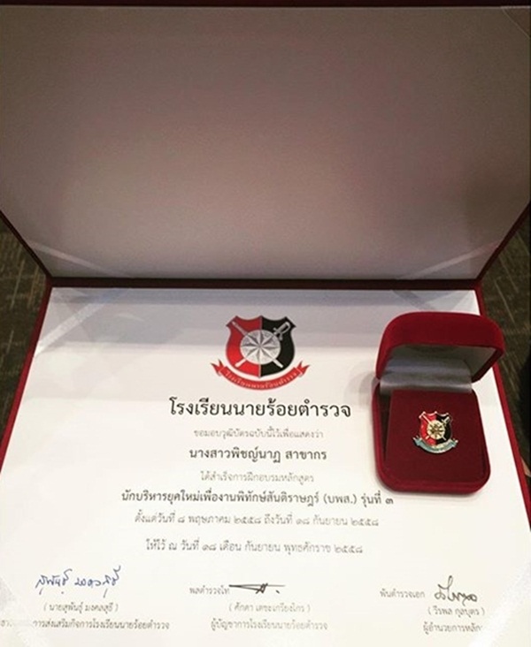 เห็นแต่บทบาทงานในวงการบันเทิง ทางด้านวิชาการสาว เมย์ พิชญ์นาฏ ก็ทำได้ดีไม่แพ้กัน นอกจากเรียนจบคว้าปริญญาตรี ด้านบริหารธุรกิจจาก ม.อัสสัมชัญ เห็นสวยเปรี้ยวแบบนี้เธอยังไปเรียนที่โรงเรียนนายต้อยตำรวจเพิ่มมาด้วย โดยจบหลักสูตร บพส.(หลักสูตรนักบริหารยุคใหม่เพื่องานพิทักษ์สันติราษฎร์) ซึ่งหลักสูตรนี้ไม่ได้เป็นตำรวจโดยตรง แต่สามารถเป็นอาสาสมัครช่วยเหลืองานตำรวจได้ ใครยังไม่เคยเห็นสาวเมย์ในลุคชุดนักเรียนตำรวจ ไปชมภาพกันค่ะ