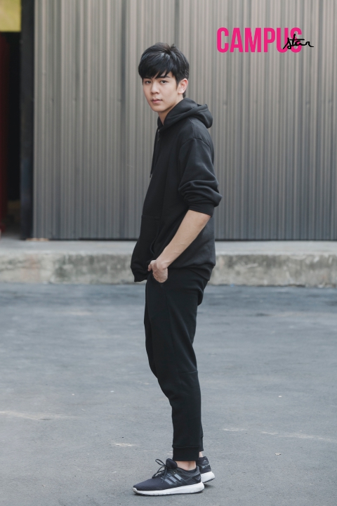 ตอนนี้ใส่ฮู้ดตลอด เพราะมีไอดอลเป็นชานยอล EXO เขาเก่งรอบด้าน แล้วก็เป็นคนมีสไตล์ด้วย ผมเริ่มชอบเกาหลีตั้งแต่เด็ก เริ่มดูซีรีส์เกาหลีเรื่องแรกฟูลเฮ้าส์ พี่เรนเล่น (หัวเราะ) แล้วก็เริ่มมาชอบ EXO เมื่อปีที่แล้ว ก็เลยจะชอบแนวๆ นี้ คือในซีรีส์เขาอยู่บ้านก็ใส่แต่เสื้อแขนยาว กางเกงวอร์ม ตอนนี้เลยฮิตแนวมินิมอล ไม่ชอบใส่สีฉูดฉาด