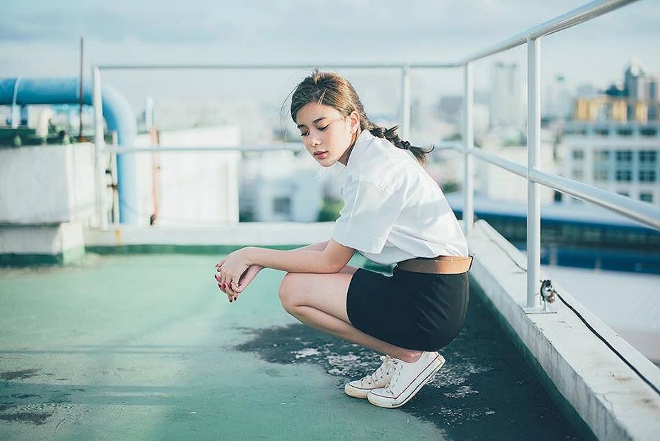 เก้า สุภัสสรา ในชุดนักศึกษา