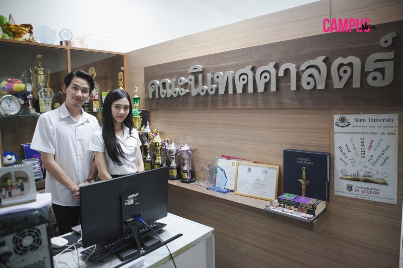 สำหรับที่ม.สยาม อยากให้เข้ามาเรียนที่คณะนิเทศศาสตร์ เป็นตัวเลือกที่น้องๆ เรียนสนุก ไม่เครียด มีทั้งเรียนในห้อง และทำงานจริงๆ ทุกคนที่นี่เป็นกันเองทั้งอาจารย์ เพื่อนๆ และรุ่นพี่ แล้ว นิเทศฯ น่าจะเป็นอะไรที่ทุกคนต้องการกันอยู่แล้ว เพราะเราใช้ในชีวิตประจำวันได้ด้วย ถ้าสนใจก็ลองเข้ามาดูกันนะคะ