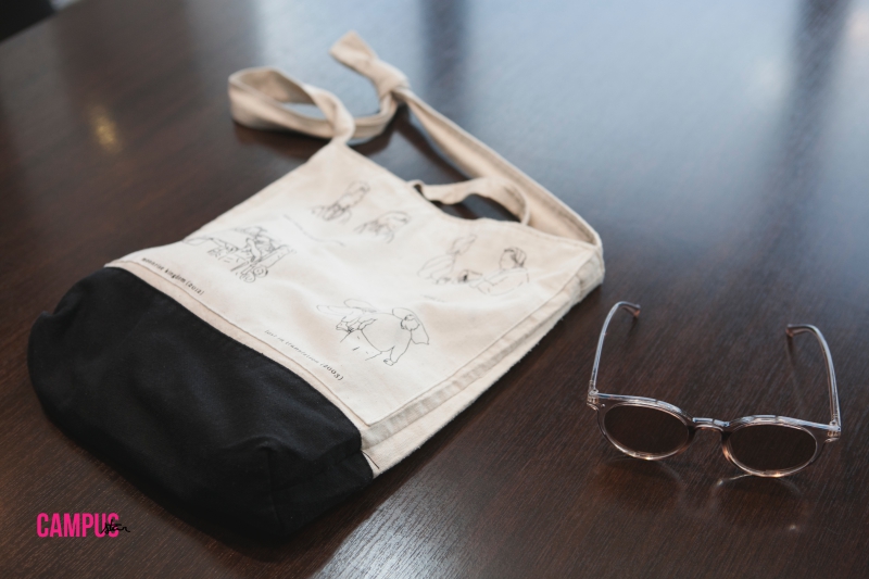 ชอบแนวกระเป๋าผ้า มีอยู่หลายใบเลย อย่างใบนี้จริงๆ มันมีลายการ์ตูนอยู่ แต่หนูรู้สึกมันดูเป็นโอตะไปหน่อย เลยไปเอาผ้าลายอื่นมาแปะทับ ไปเรียนก็ใส่พวกลิปสติก กระเป๋าสตางค์ กุญแจห้อง แล้วก็พวกสมุดกับปากกาไว้จดในชีท ช่วงนี้แอบเรียนหนักนิดหนึ่ง เพราะกะว่าจะจบภายในสามปีครึ่งตามเพื่อนๆ ในกลุ่ม