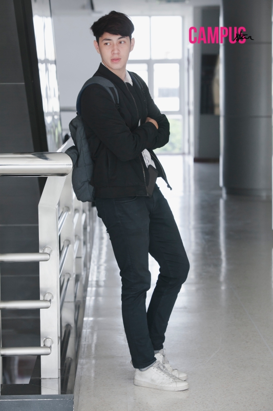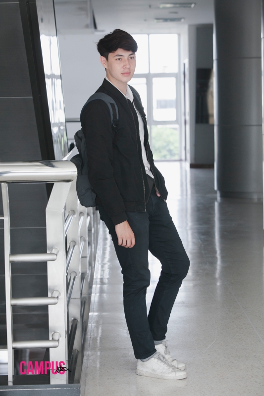 “ขึ้นปี 3 คณะนิเทศศาสตร์ สาขาวิทยุกระจายเสียงและวิทยุโทรทัศน์ ม.ศรีปทุม เพราะเราก็ทำงานเบื้องหน้าอยู่แล้ว อยากศึกษางานเบื้องหลังบ้าง ซึ่งพอเรียนๆ ไป ก็ได้เห็นงานทั้งเบื้องหน้าและเบื้องหลังเลย แล้วเอาไปปรับใช้ในการทำงานได้ มีอุปกรณ์ สตูดิโอให้ลองทำจริงตามสโลแกนของมหา’ลัย ที่ได้ถ่ายจริง เรียนกับอุปกรณ์จริง ได้คิดสร้างสรรค์เป็น เพราะนิเทศฯ มันต้องคิดสร้างสรรค์งานตลอดเวลาให้ผู้ชมสนใจ เพื่อนๆ ก็แนวเฮฮา ปาร์ตี้สนุกสนาน การแต่งตัว เป็นไปตามสาขานั้น อย่างการแสดงจะค่อนข้างแต่งจัดเต็ม ส่วนฟิล์มจะดิบๆ เถื่อนๆ ผมไม่แน่ใจว่าเขาเป็นวิศวะหรือเด็กนิเทศ (ฮา) ส่วนของสาขาผมออกแนวเรียบร้อยมากกว่า ผมก็ชอบอะไรเรียบๆ สบายๆ แต่มามอก็ต้องถูกระเบียบหน่อย เพราะเราเป็นนักเรียนทุนด้วย”