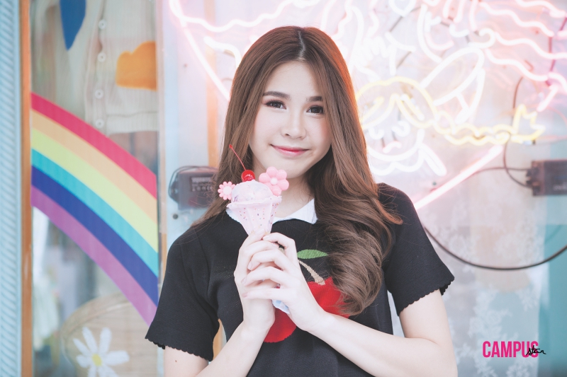 เรียนปี 2 คณะบริหารธุรกิจ สาขาการจัดการธุรกิจระหว่างประเทศ ม.กรุงเทพ ที่เลือกเพราะที่บ้านมีธุรกิจระหว่างประเทศเหมือนกัน ก็เลยอยากจะเรียนให้ตรงเพื่อมาช่วยงานที่บ้าน แต่ตอนแรกเข้าปี 1 เลือกเรียนอินเตอร์ทางด้านผู้ประกอบการที่กล้วยน้ำไทก่อน เพราะหนูเป็นคนชอบพูด ชอบเรียนภาษาภาษาอังกฤษ ล่าสุดก็เพิ่งไปเรียนภาษาเพิ่มเติมที่นิวซีแลนด์มา แต่พอปีแรกเรียนจริงๆ แล้วมันค่อนข้างหนัก ตารางเรียนตั้งแต่เช้าแปดโมงถึงสี่โมงครึ่งทุกวัน ก็เลยย้ายมาเรียนภาคบ่ายเป็นภาคไทยแทน ก็เรียนไม่หนักมาก ชิลขึ้น ในส่วนวิชาภาค การเรียนบริหารก็ไม่ได้ยากมาก มันก็เป็นทฤษฎีที่เราต้องเอาไปปฎิบัติเรียนรู้ด้วยตัวเองค่ะ จะมีที่ยากเป็นวิชาพวกบัญชีไฟแนนซ์ที่จะมีการลงลึกในดีเทลมากหน่อย แต่ก็ผ่านมันมาได้